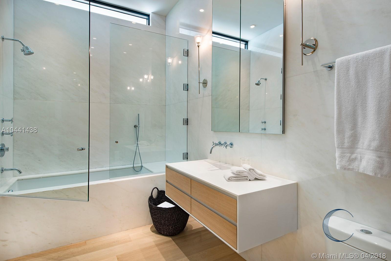 Stunning tropical modern home on gated Sunset Island III on oversize corner lot. Brand new construction completed 2017, 5900 SF interior with gourmet kitchen, oak and marble flooring, lofted ceilings in open plan living areas. Telescopic sliding doors create indoor outdoor living within tranquil landscaped garden. 6 beds, 7 full baths, and 1 half bath. Outdoor summer kitchen beside pool deck, cabana bath, and 2 car garage. Walking distance to Sunset Harbor retail.