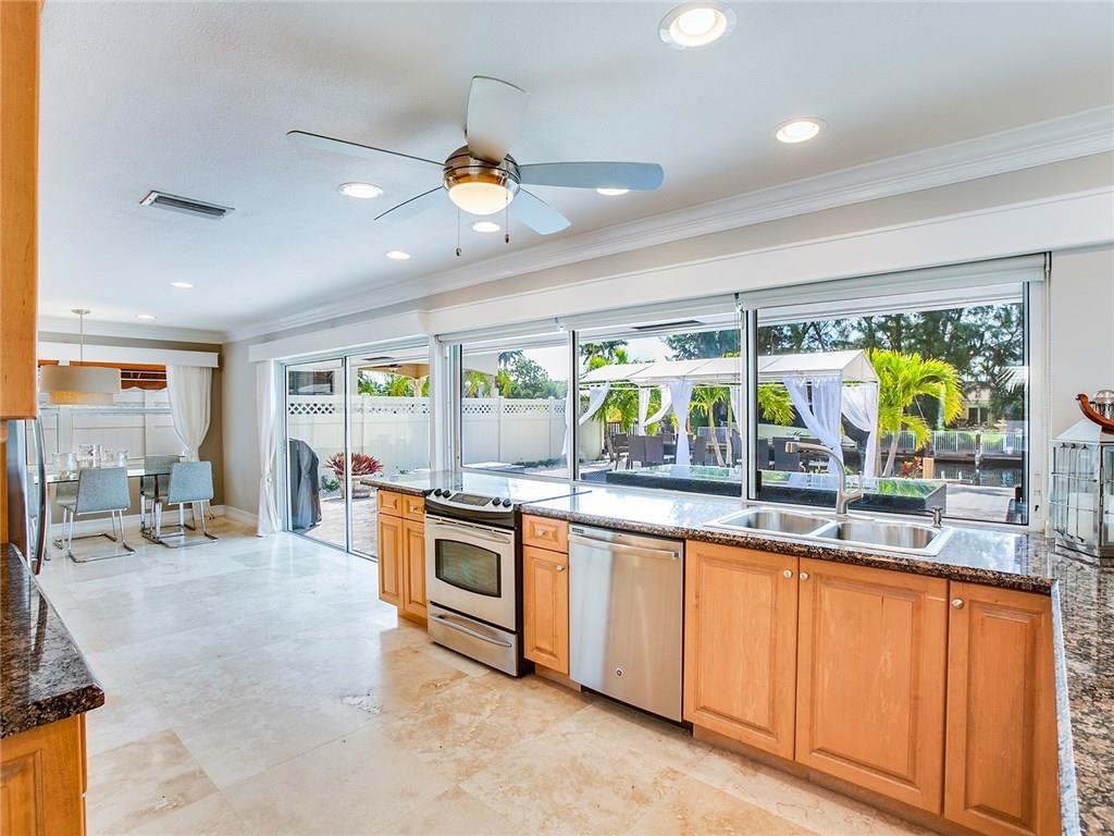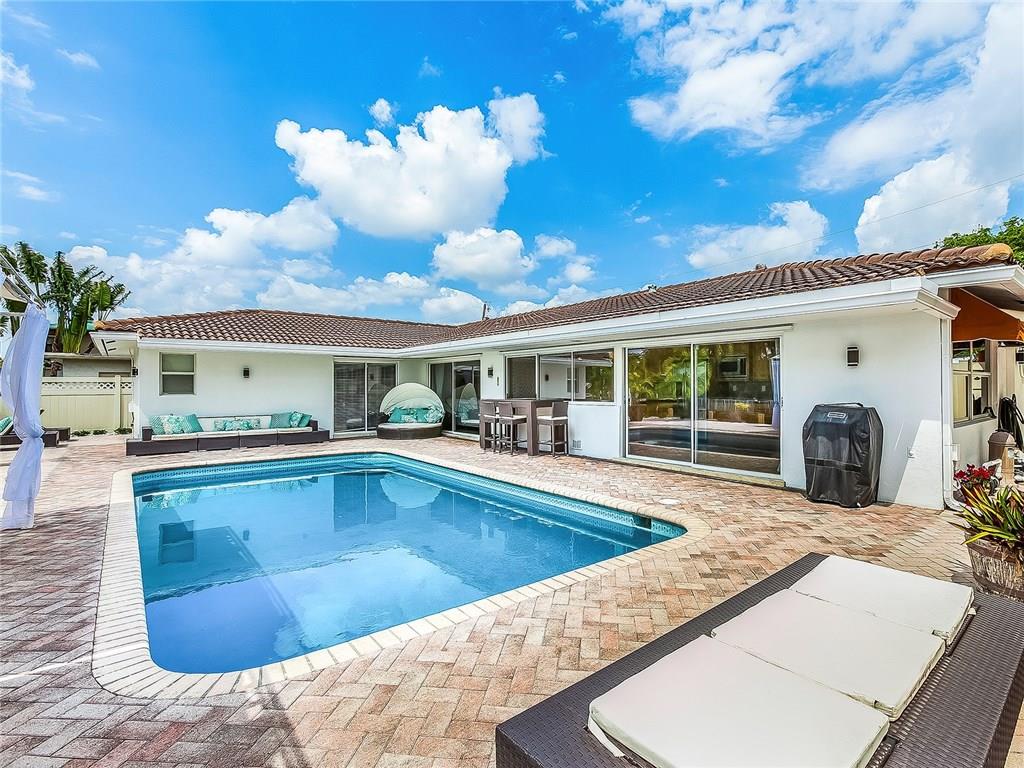 This beautiful fully furnished 3 bedroom 2 bath home offers the perfect setting for boaters and entertainers. The spacious pool area has 75ft of waterfront and includes a newer dock. The interior open floor plan provides for another great entertainment area. The bright open kitchen has granite, stainless steel appliances and marble. Tastefully furnished by Miami designer Jeanine Johnsen. Just bring your boat your toothbrush and move right in! Ocean access, one fixed bridge 13.5 ft.
