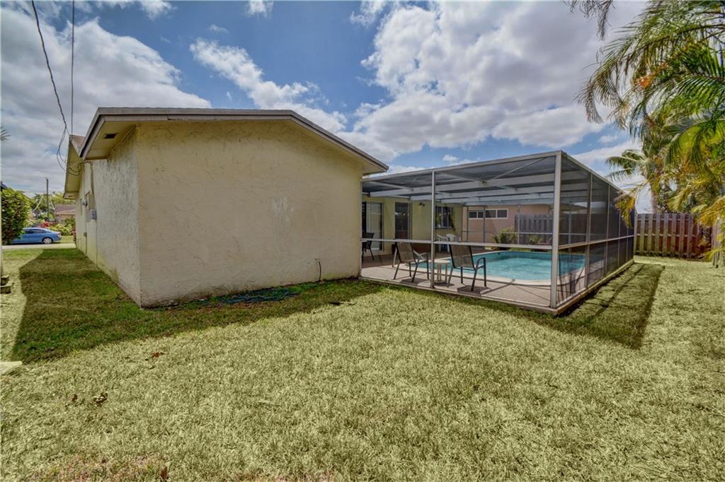 This 3 bedroom, 2 bath pool home in Sunrise Golf Village features an updated, eat-in kitchen with real wood cabinets & granite, updated bathrooms, 2006 roof, gas water heater, screened-in pool & patio, converted 2 car garage, laminate in bedrooms, tile in living areas and fenced yard. Best of all NO HOA! Close to shopping & dining.