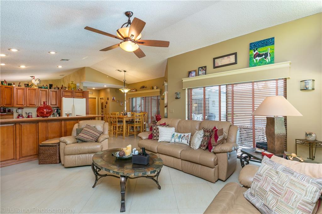 Looking for privacy, a nice sized backyard, serene water views, no HOA and welcoming sunsets? Then this might be your home! This immaculately maintained 4 bed / 2 1/2 bath home features screened in patio/pool, porcelain tile throughout the living area, vaulted ceilings, hurricane protection (comb. of accordions / panels) & additional insulation in attic for lower utility bills. Home has living, family, formal dining room, breakfast area, & large open kitchen w/ views of the pool. This one is a must see!