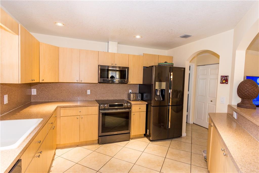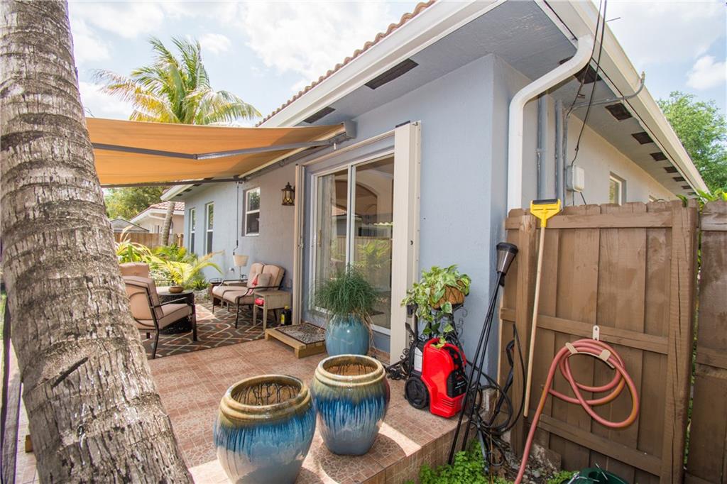 Amazing opportunity on this beautifully upgraded newer home built in 2004 in the heart of Hollywood! Diagonal stone tile throughout living areas and wood laminate in the bedrooms. High, knockdown textured ceilings with Crown moldings, recessed and upgraded lighting. Very large kitchen with designer arches, upgraded Samsung appliances and tons of counter space, opens to living and dining areas. The tiled back patio with awning provides a private and tranquil place to relax. Make this your home today!