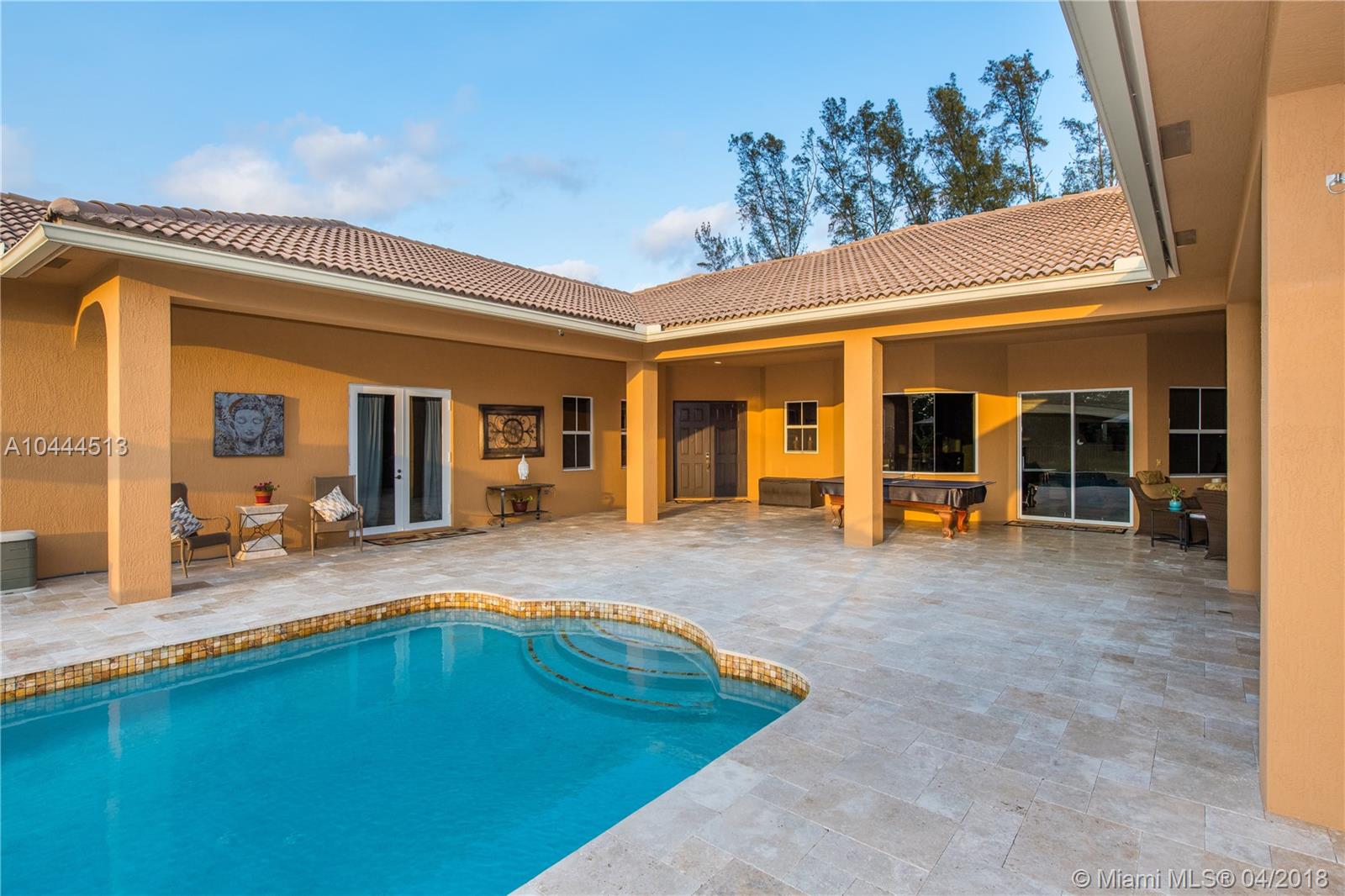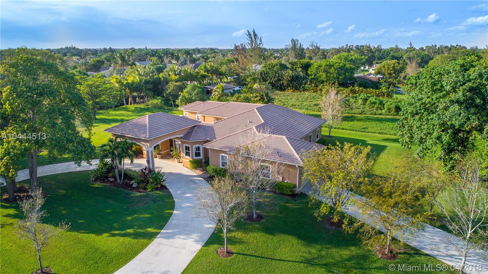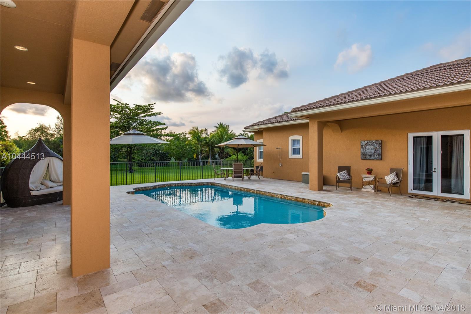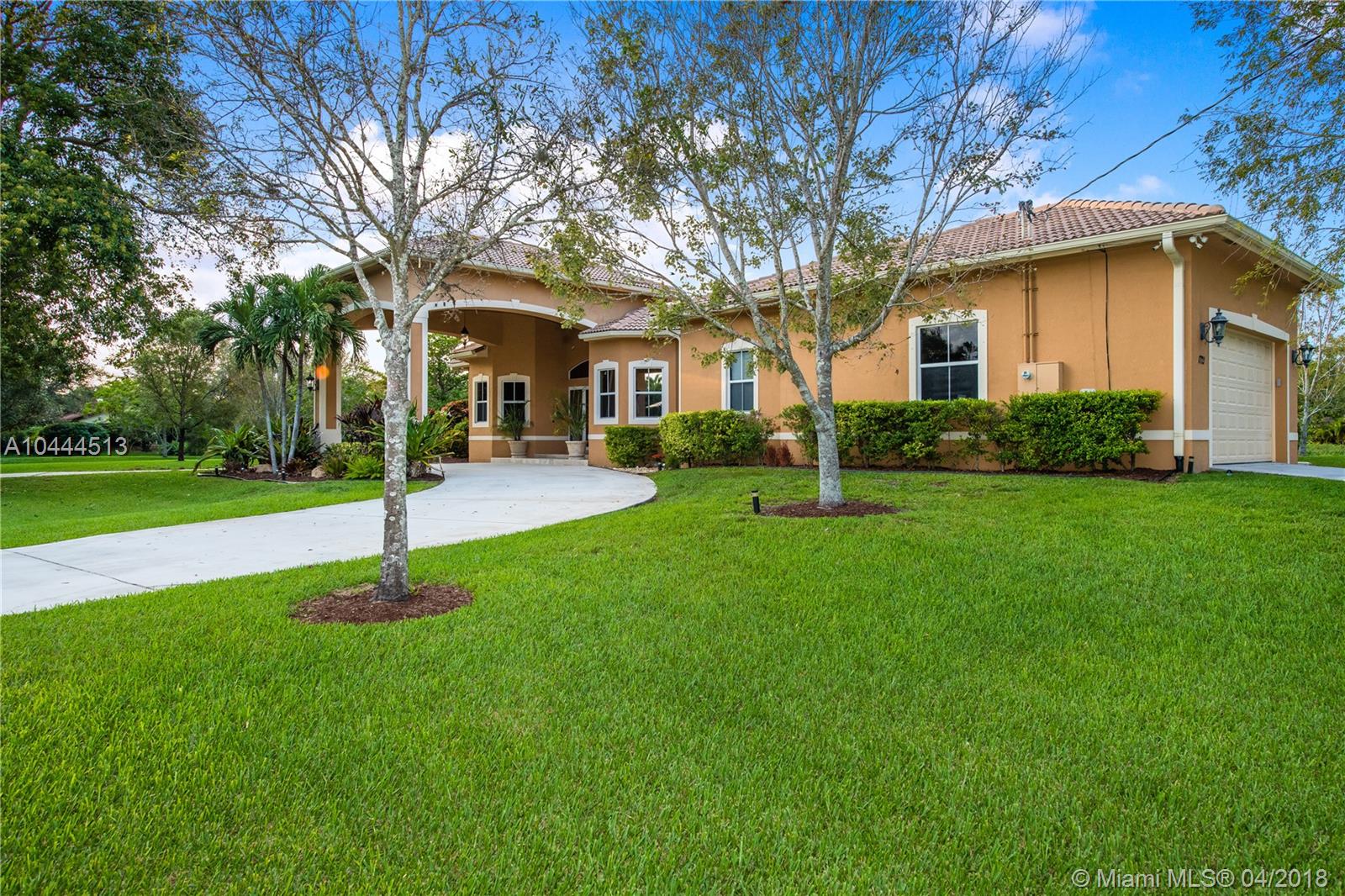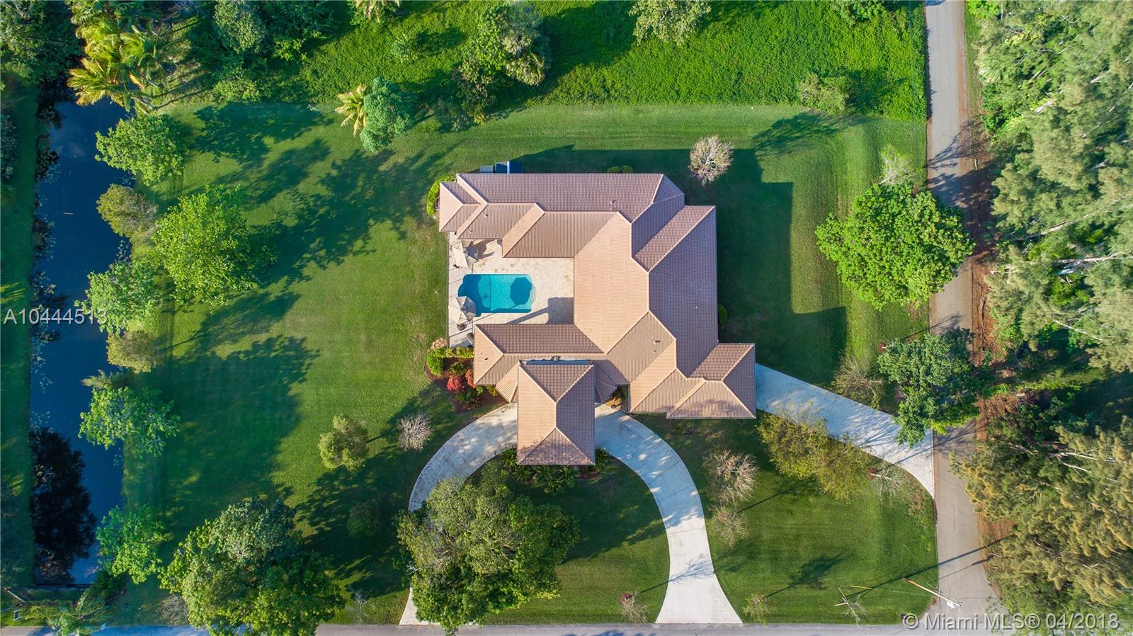 THIS UNIQUE ESTATE, LOCATED IN THE MIDDLE OF DAVIE'S FINEST COMMUNITIES, FEATURES A PORTE COCHERE ENTRANCE, LONG CIRCULAR DRIVEWAY, 5 BEDROOMS, 3.5 BATHS, SIDE-ENTRY GARAGE WITH SUMMER KITCHEN/OUTSIDE BAR AND POOL OVERLOOKING THE GARDEN. THIS RESIDENCE IS SEATED ON 1.25 ACRES WITH OVER 3,000 SQUARE FEET OF PATIO LIVING. THE GOURMET KITCHEN HAS STAINLESS STEEL APPLIANCES, GRANITE COUNTERTOPS AND WOOD CABINETRY. SEPARATE GUEST SUITE HAS ITS OWN ENTRY. SECURITY INCLUDES VIDEO CAMERAS INSIDE AND OUT. A+ SCHOOLS, EASY ACCESS TO HIGHWAYS, 595, 1-75 AND SAWGRASS EXPRESSWAY. ENJOY CITY AMENITIES WHILE LIVING IN A PEACEFUL, RURAL, PARK-LIKE SETTING WITH NO NEIGHBORS CURRENTLY BEHIND YOU.
