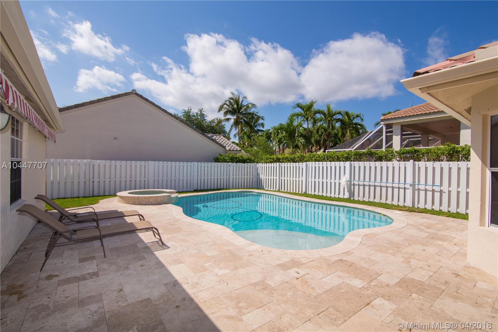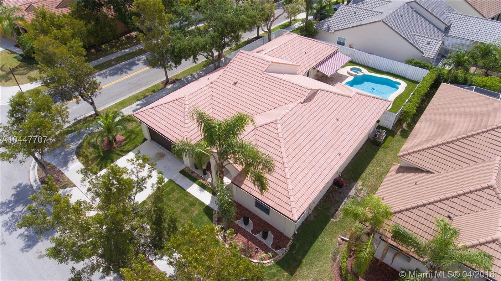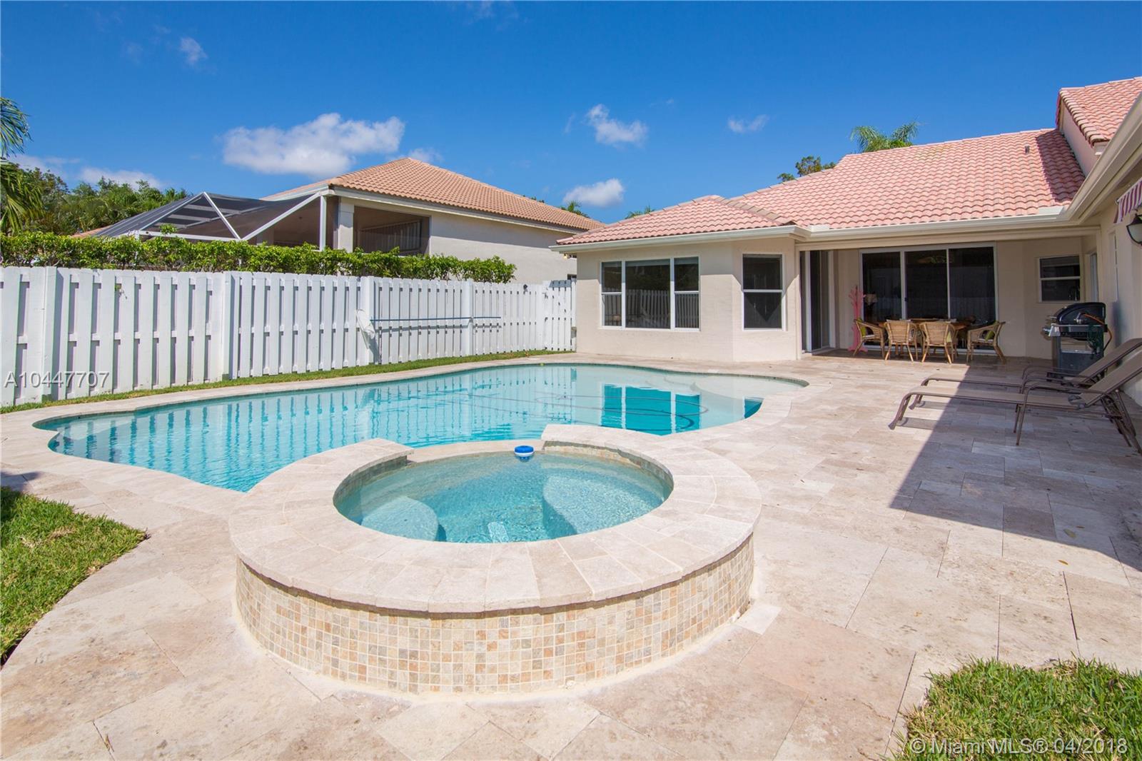 IMPECCABLE DESIGNED 5 BEDROOM AND 2.5 BATH HOME VERY WELL MAINTAINED. MARBLE THROUGHOUT LIVING AREA. BEAUTIFUL DARK WOOD FLOORS IN BEDROOMS. CUARZO COUNTERTOP IN KITCHEN WITH JACUZZI, TUB IN MASTER-BATH, BOTH BATHROOM JUST REDONE, HIGH END BLINDS. SIT OUT ON THE COVERED PATIO OVERLOOKING THE NEW SALT POOL WITH SPA. CORNER LOT. ROOF JUST PRESSURE CLEANED. GREAT LOCATION CLOSE TO SUPERMARKETS AND SAWGRASS EXPRESSWAY THE LAKES AMENITIES INCLUDE COMMUNITY POOL, PLAYGROUND, SOCCER FIELD, GUARD GATE. BEST SCHOOLS ALL A RATED.