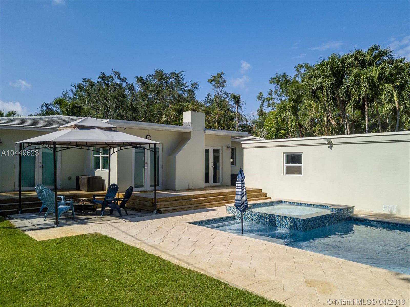 MIAMI SHORES POOL HOME ON A QUIET STREET. ONE CAR GARAGE WITH A/C, FENCED YARD WITH PATIO AND NEW POOL & SPA. 3 BEDROOMS AND 3 FULL BATHS. OPEN FLOOR PLAN WITH WOOD AND MARBLE FLOORS. OPEN KITCHEN, WOOD BURNING FIRE PLACE, IMPACT WINDOWS, CENTRAL A/C, UPDATED BATHROOMS. ALARM SYSTEM, NICE LANDSCAPING, SPRINKLER SYSTEM. INSIDE LAUNDRY. MOVE IN CONDITION.