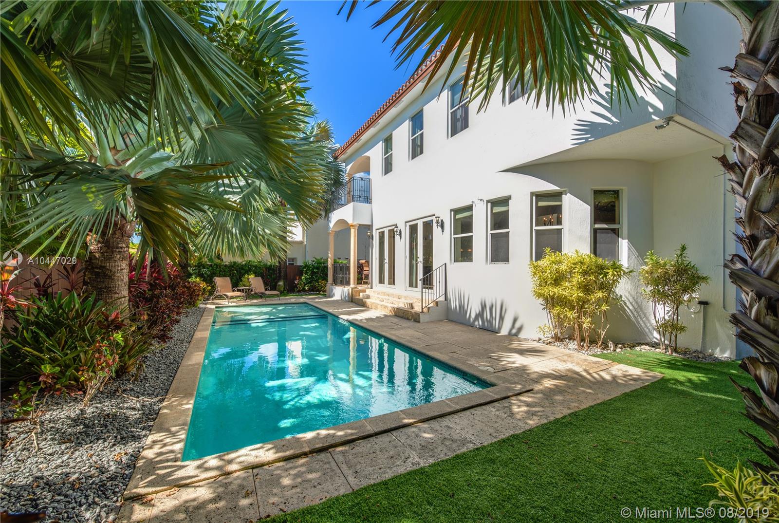 Located on prestigious lower N Bay Rd, this 6 BD, 5BA home is situated on a lush 8,540 sqft lot in the heart of Miami Beach. Grand 3 story foyer w/soaring ceilings & exquisite architectural details welcome you to this home built in 2005. This 4,841 total sqft renovated home features abundant natural light throughout, an open living area, large eat-in, gourmet chef’s kitchen w/Subzero refrigerator, 6 burner gas range & wine cooler. Private backyard w/a saltwater pool is perfect for entertaining. Large master suite features private balcony, his & hers closets, master bath w/ separate tub & shower, dual sinks & a bidet.Additional features include a 2 car garage, hardwood floors, & full size laundry room.Enjoy living walking distance to Sunset Harbour shops,world class restaurants, & more!