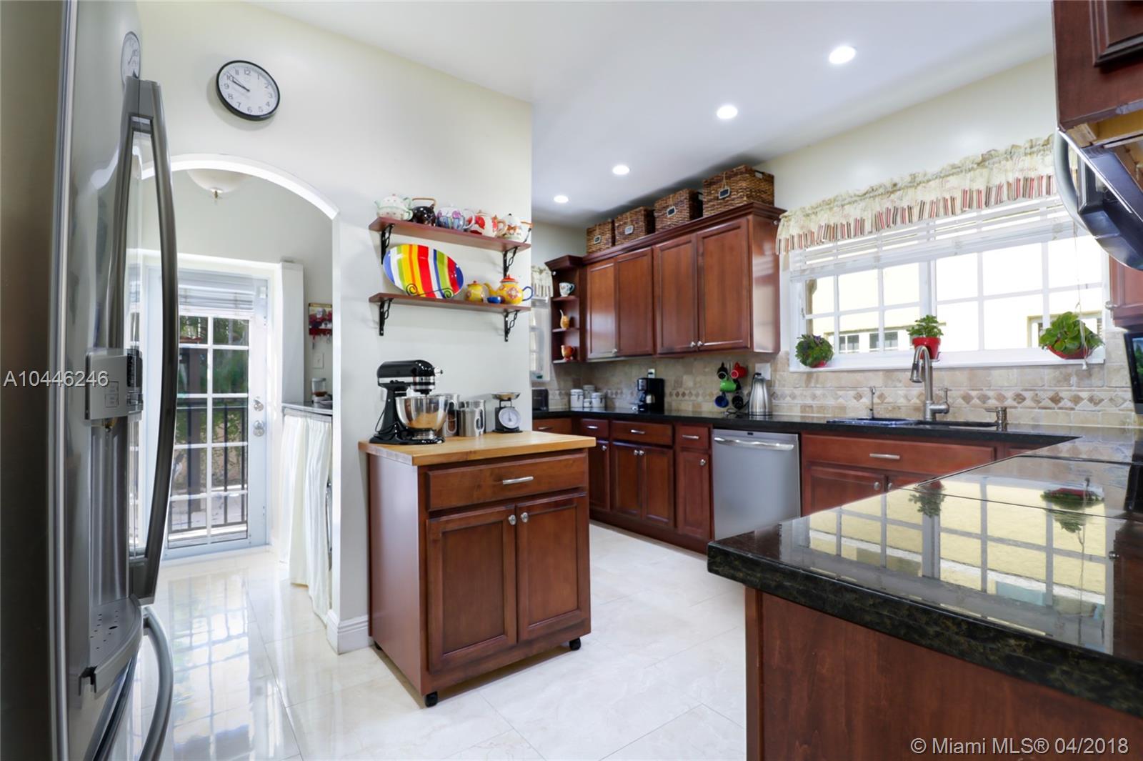 Undeniable Gables charm flawlessly renovated to modern standards. Steps from the Coral Gables Country Club & Granada Golf Course, this beautiful 2/2 home with 1/1 cottage offers: oversized impact windows and doors, Brazilian cherry floors, new AC, custom cabinets and built-ins throughout, updated electrical and plumbing + sewer, high-efficiency tankless water heater, custom closets, and new roofing. Historic arches, French doors, and wood-burning fireplace have been perfectly preserved. Marble baths were recently redone. Remodeled kitchen features granite counters, travertine backsplash, stainless steel appliances, and plenty of storage. Inviting backyard patio includes pergola, café lights, mature landscaping, and iron gates and fencing. Cottage has full bath and own AC unit.