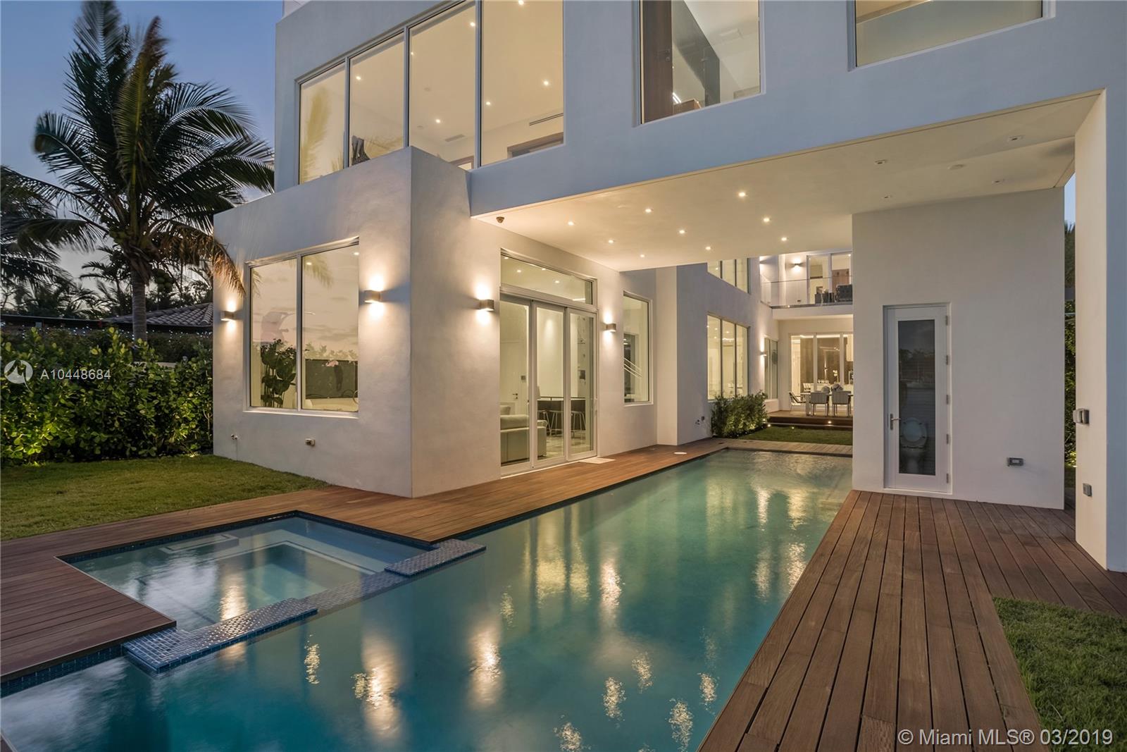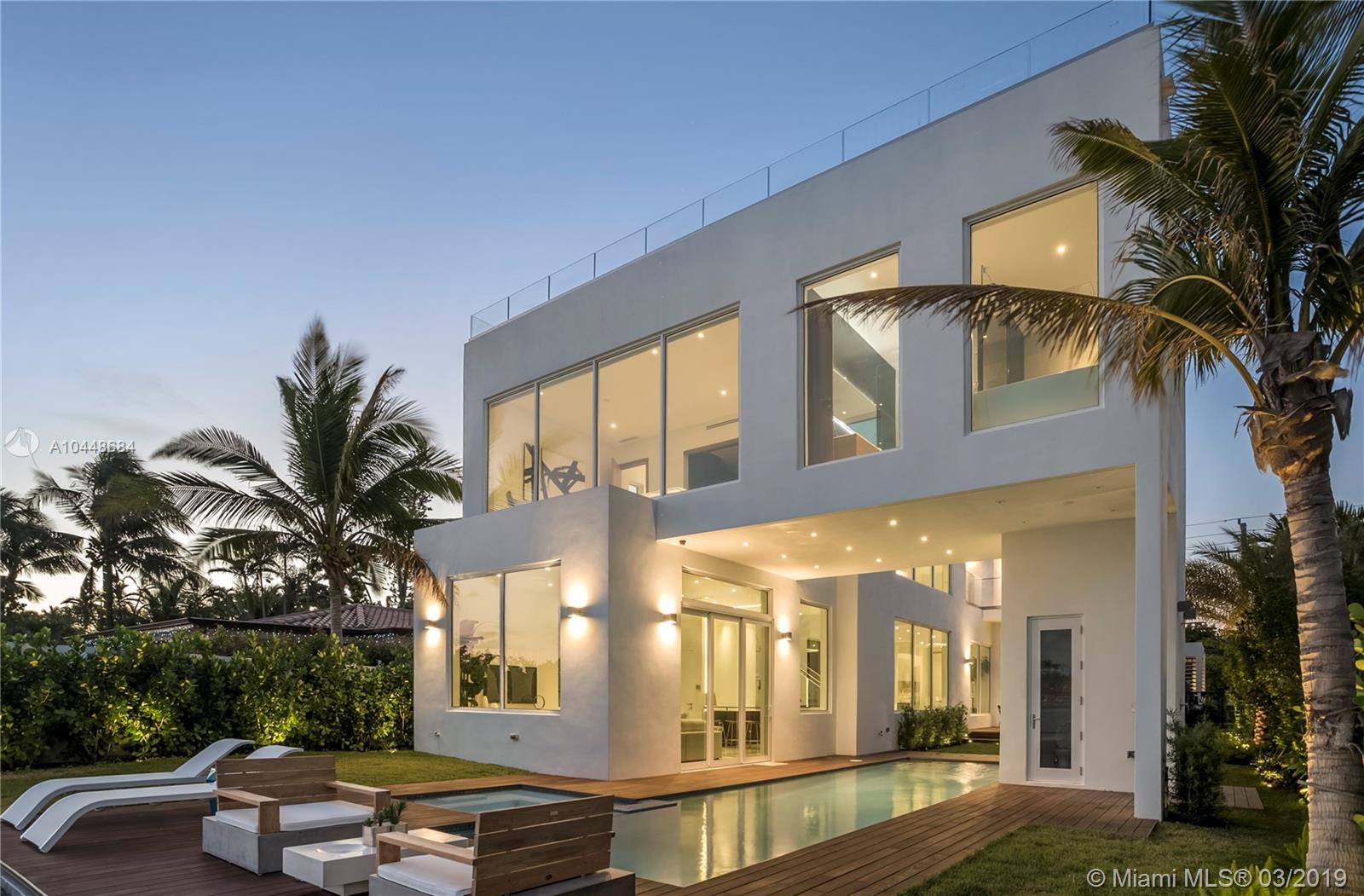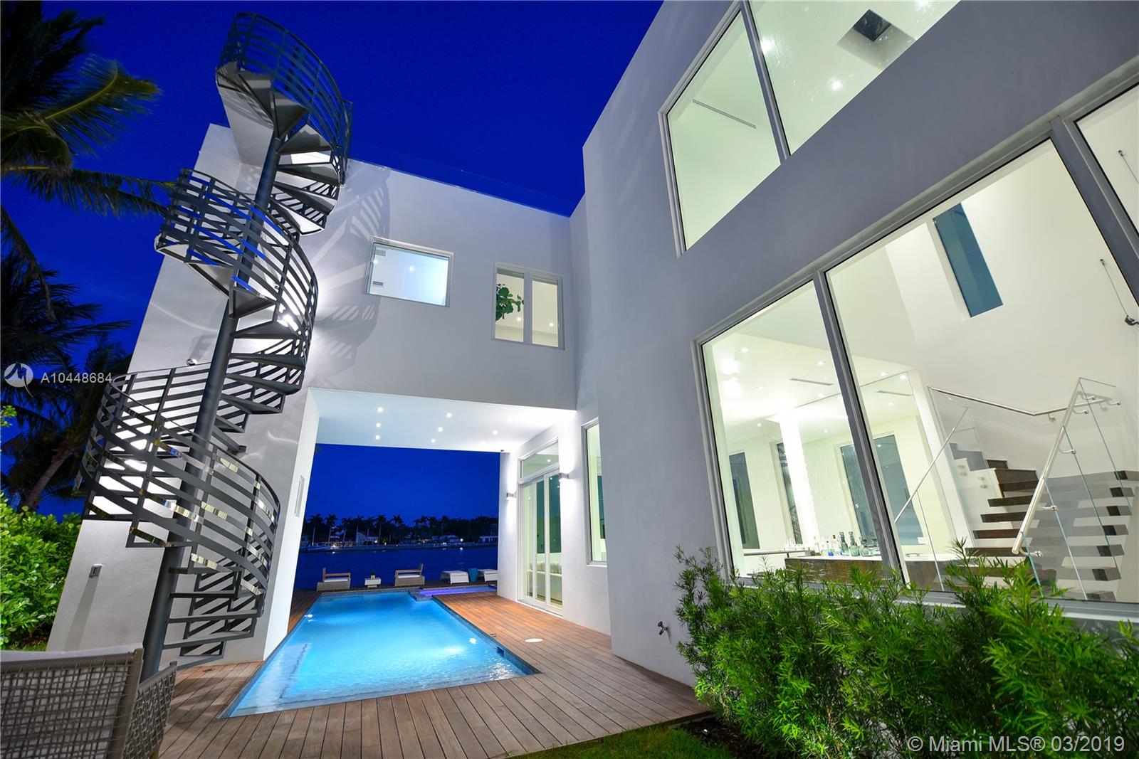 Rare opportunity to own an award winning pristine Ultra-Modern waterfront masterpiece! This 5 bedroom luxury home boasts over 5000 Sq ft of living area and 53 ft of open water frontage. The exceptionally designed luxurious living space flawlessly connects interior with the exterior. Deluxe textures and exceptional finishes adorn the one of a kind design of this home. Inside, an incredible living room with dramatic 20+ ft ceilings, featuring a gourmet kitchen by SMEG, and custom Italian cabinetry throughout all bathrooms and closets; all with incredible water views. Pool and boat dock. Automated LED lighting conveniently highlight the lush landscaping. Enjoy the sunset from your private third floor terrace or master spa bath. This home has it all.