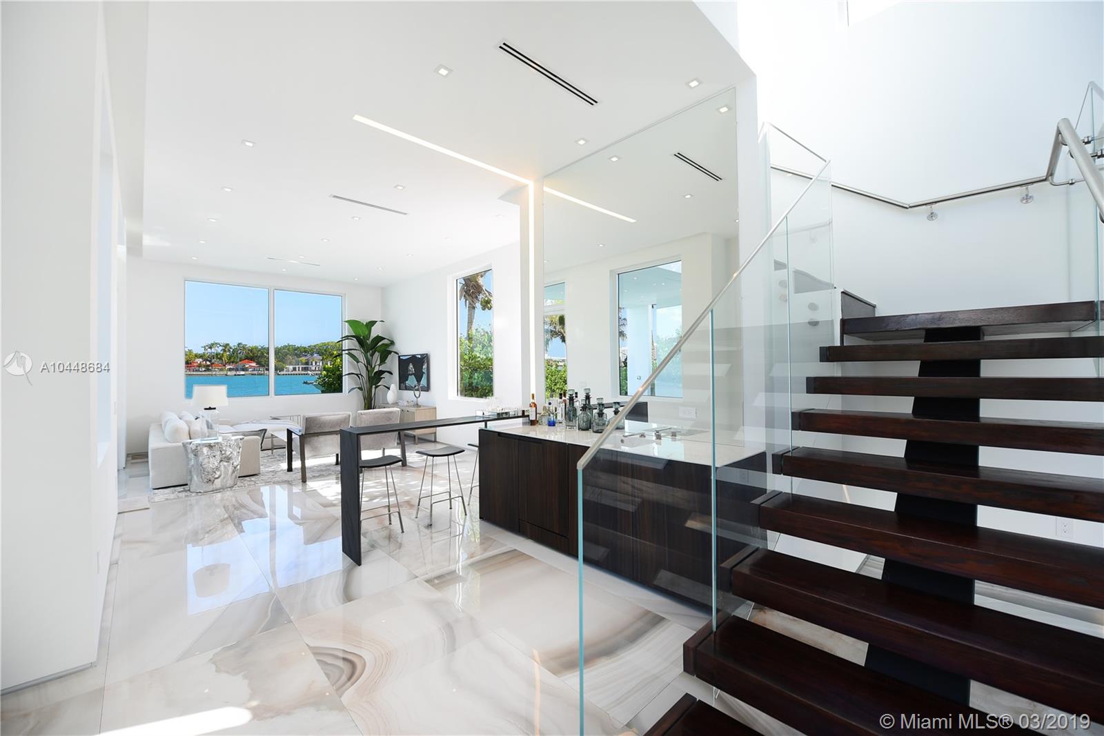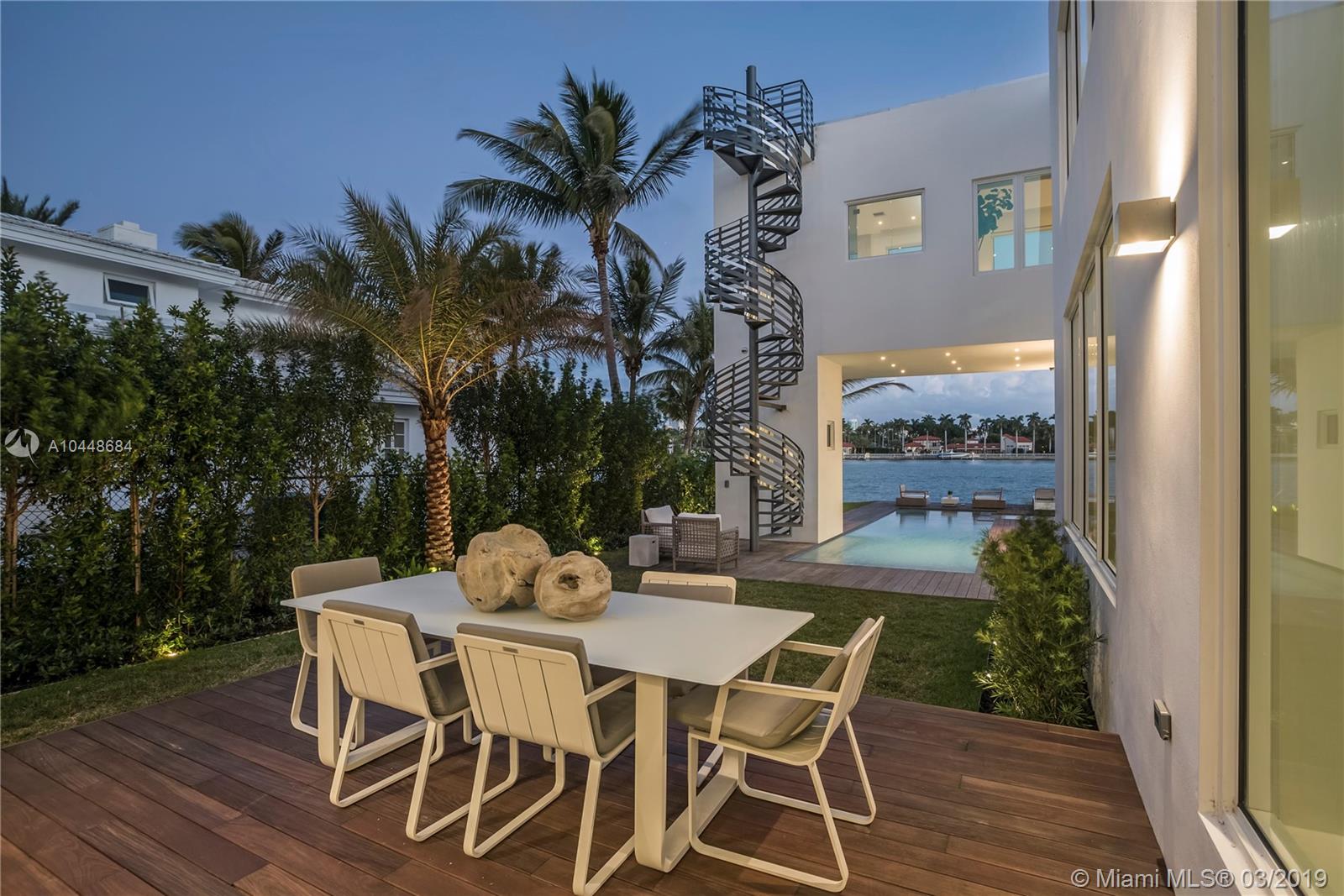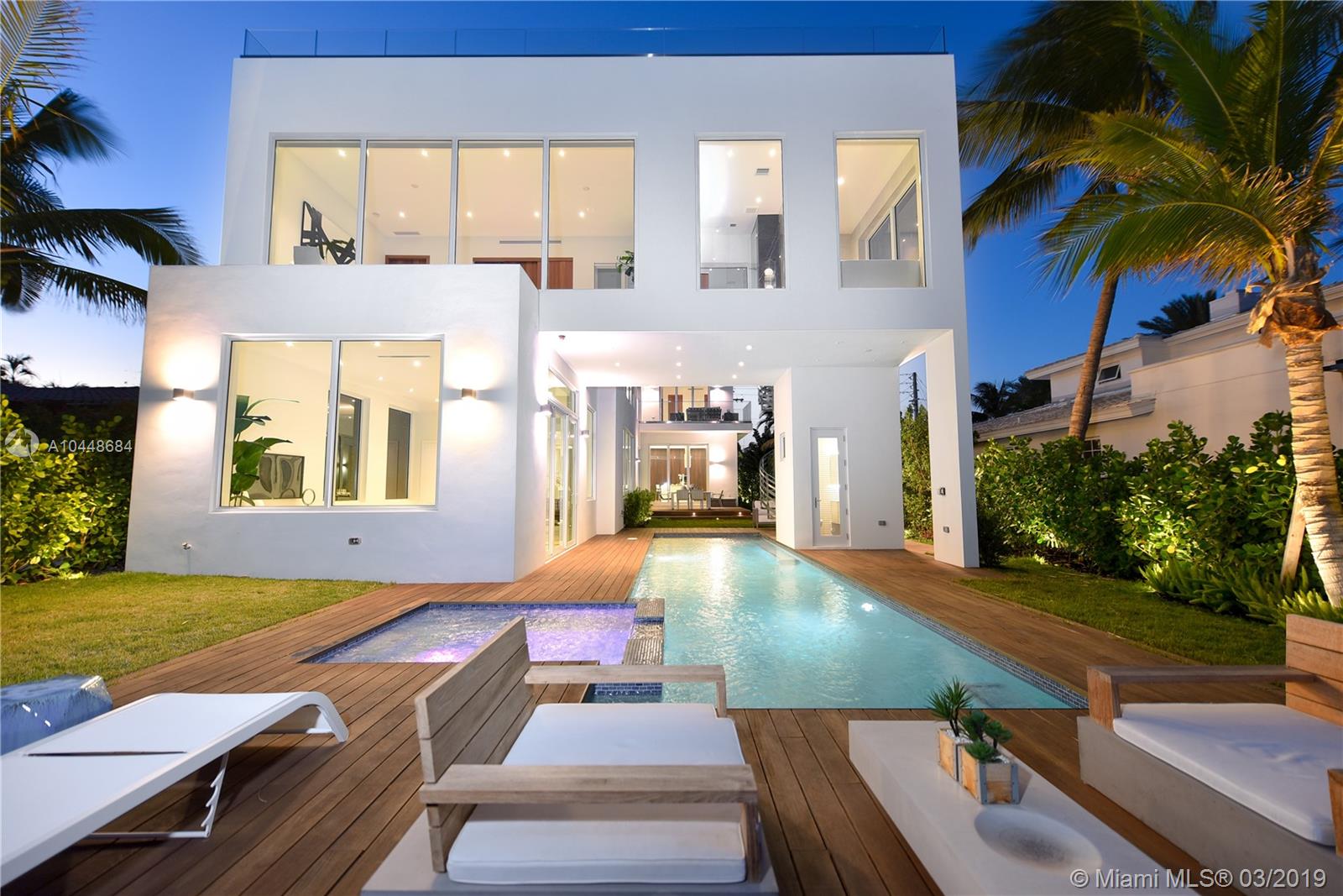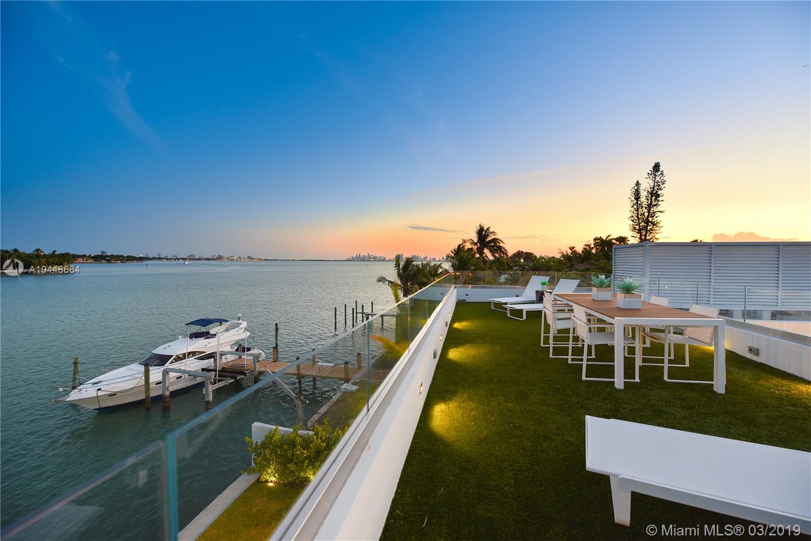 Rare opportunity to own an award winning pristine Ultra-Modern waterfront masterpiece! This 5 bedroom luxury home boasts over 5000 Sq ft of living area and 53 ft of open water frontage. The exceptionally designed luxurious living space flawlessly connects interior with the exterior. Deluxe textures and exceptional finishes adorn the one of a kind design of this home. Inside, an incredible living room with dramatic 20+ ft ceilings, featuring a gourmet kitchen by SMEG, and custom Italian cabinetry throughout all bathrooms and closets; all with incredible water views. Pool and boat dock. Automated LED lighting conveniently highlight the lush landscaping. Enjoy the sunset from your private third floor terrace or master spa bath. This home has it all.