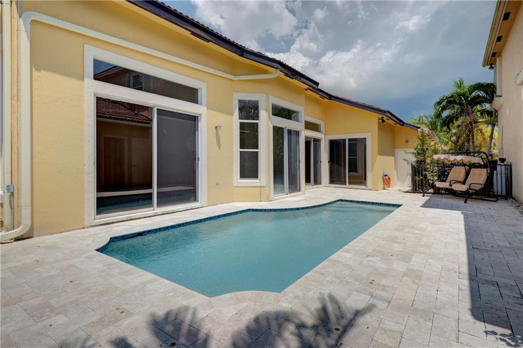 Price Reduction!Perfect home in Heron Bay!3 bedrooms 2baths 2car garage. One story home with beautiful NEW pool and pavered patio.Freshly painted and ready for new owners.Eat in kitchen w/newer stainless appliances. Formal living room&dining room. Family room adjacent to kitchen. Master bedroom w/sliders to patio, large walk in closet & bath w/dual sinks garden tub & shower. Amazing clubhouse with resort style pool, tennis, exercise room, racquet ball, playground. Guard gated community. Excellent schools.