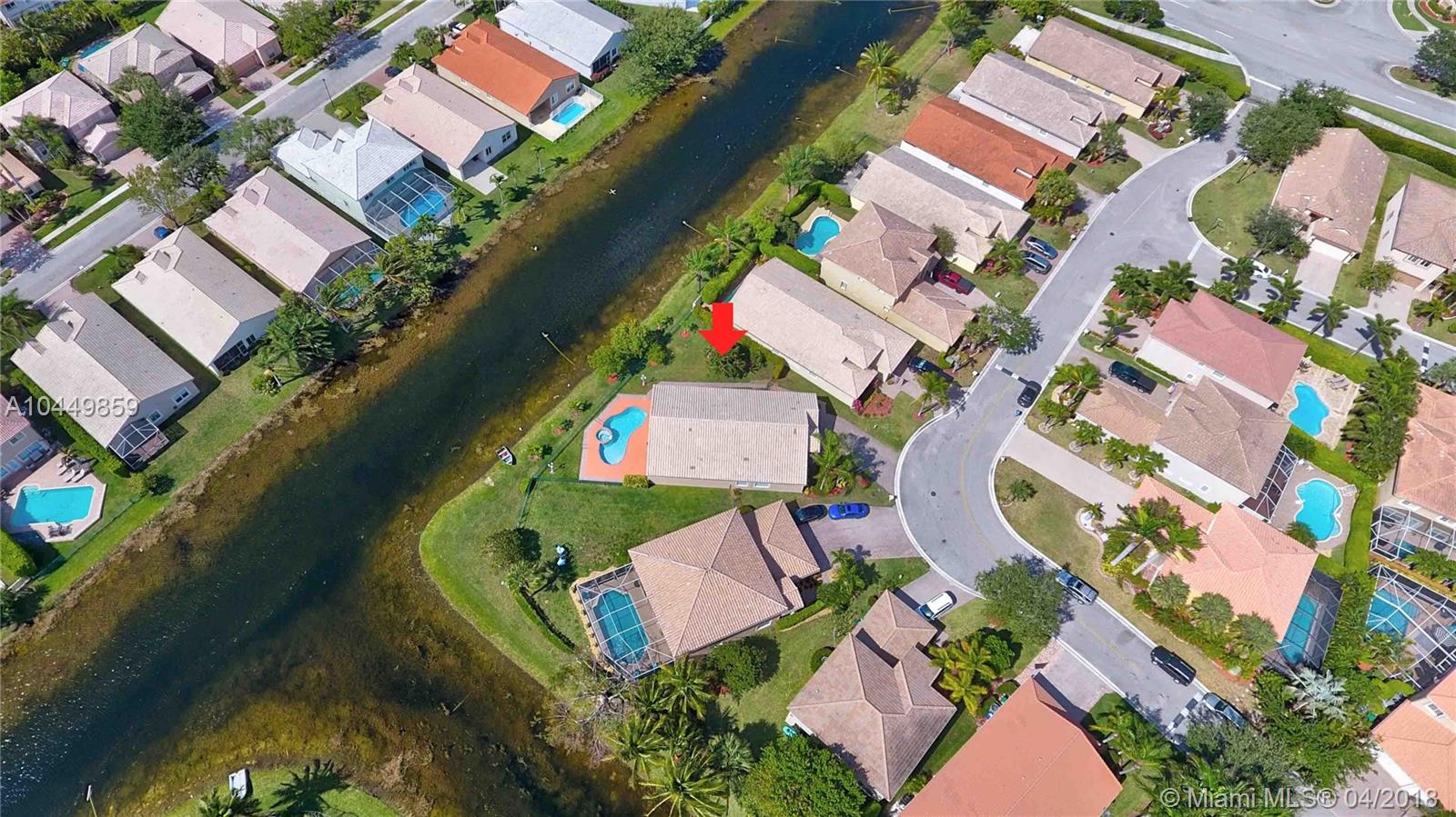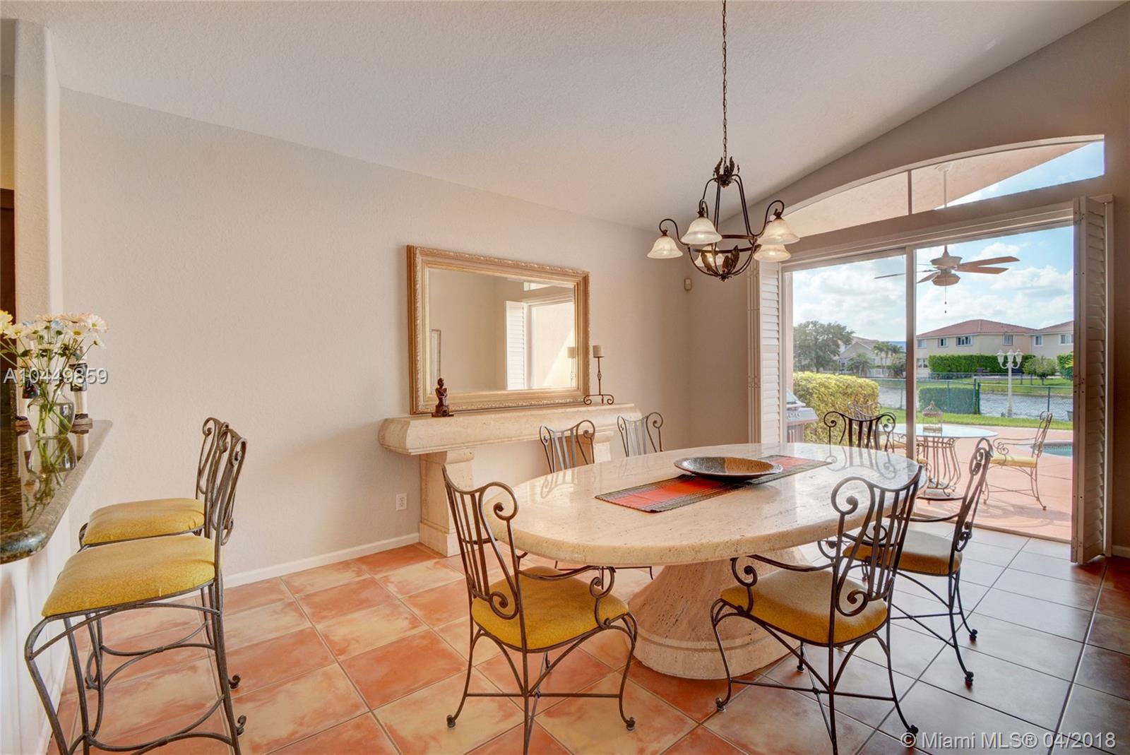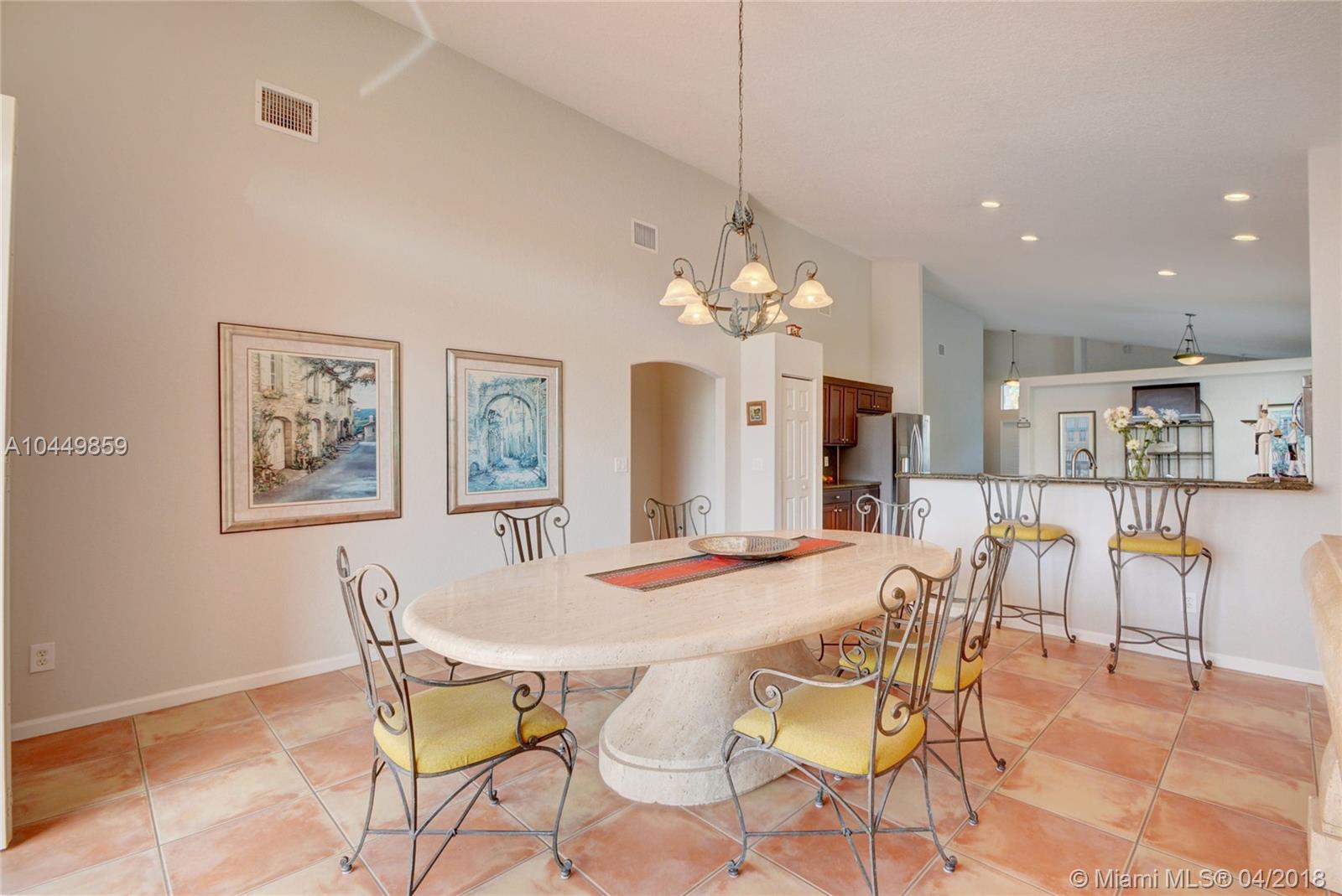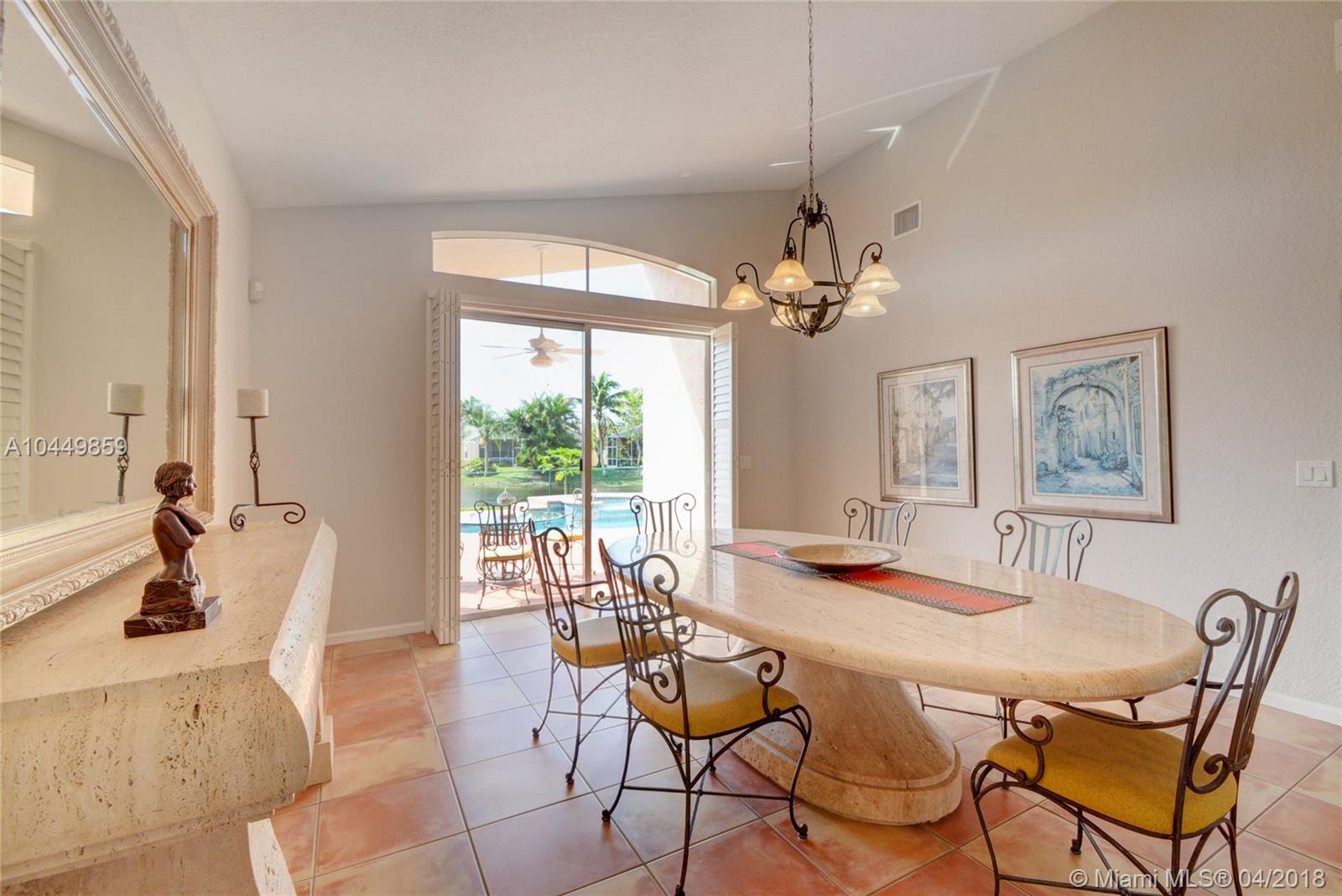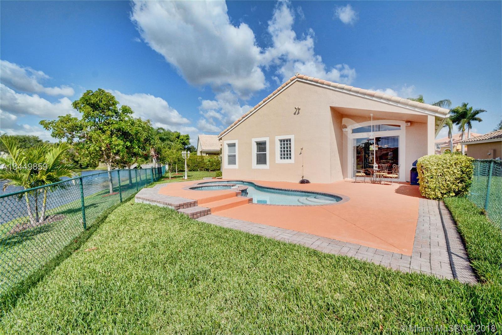 This house has it all!. One story,large pie shaped waterfront lot, heated swimming pool, luscious fruit trees (mango, papaya, loquat, lemon, avocado), high volume ceilings, eat in kitchen, stainless steel appliances, granite countertops, new A/C 6 years ago, 18" tile floors in living areas, laminated in bedrooms, plantation shutters, wood blinds. Coral Shores is a gated community, all A+ rated schools. Travertine table and mantle stays with property.Financed offers must include desktop underwriting approval.