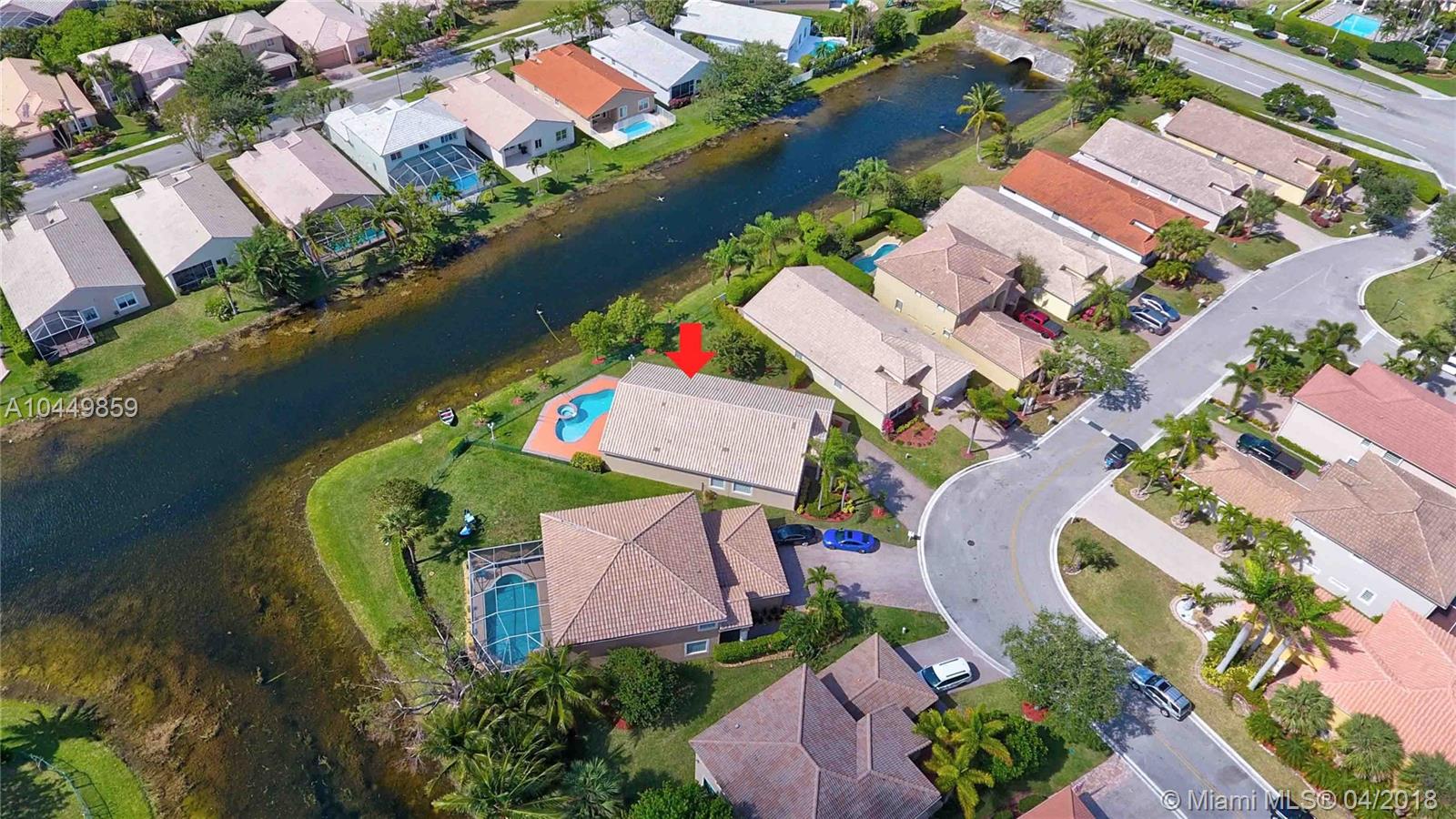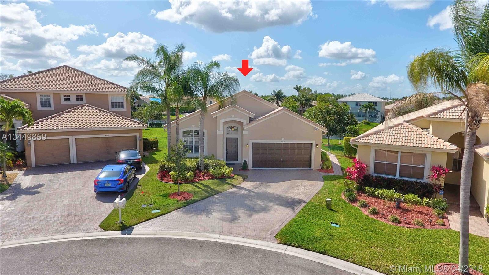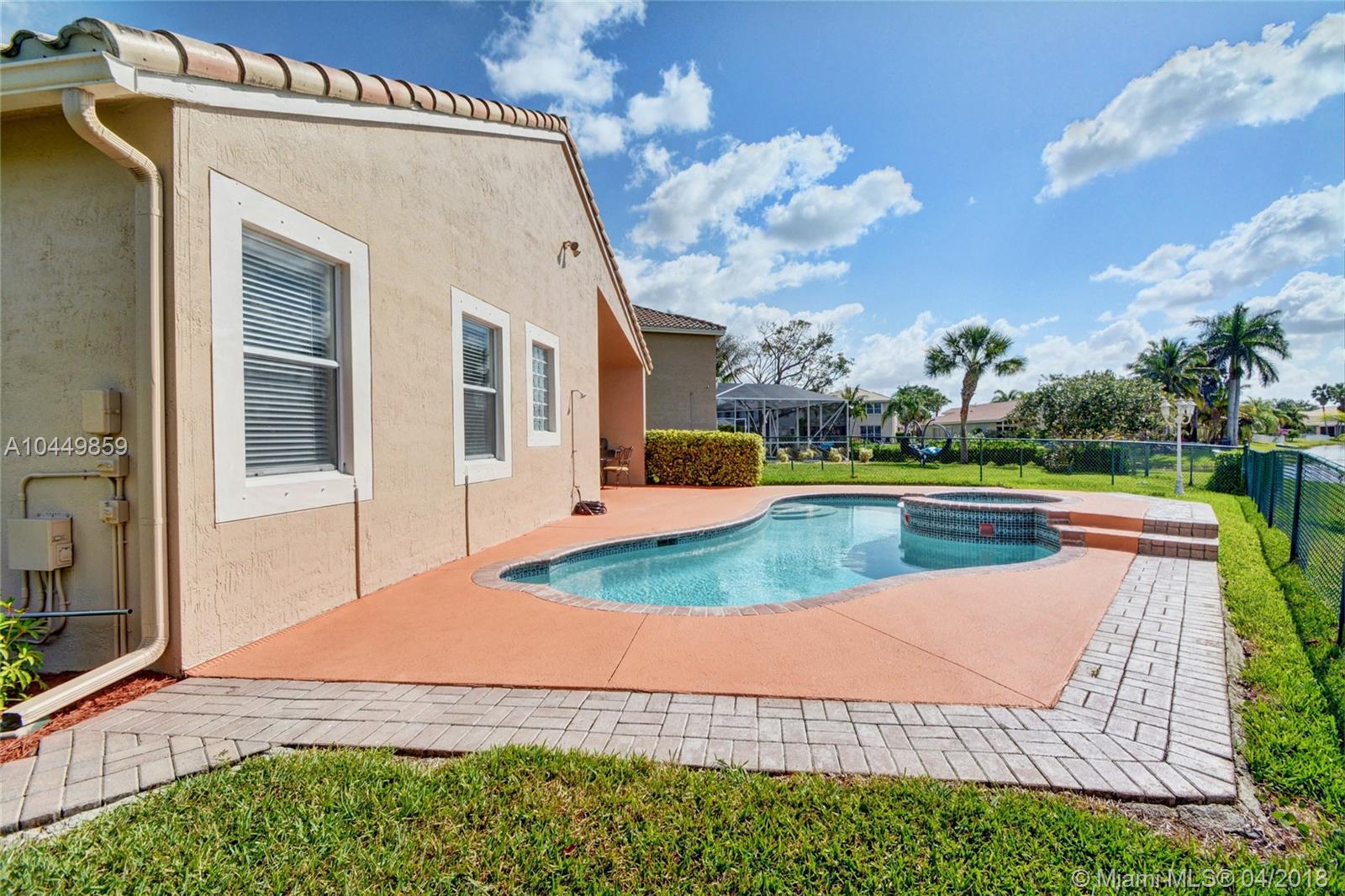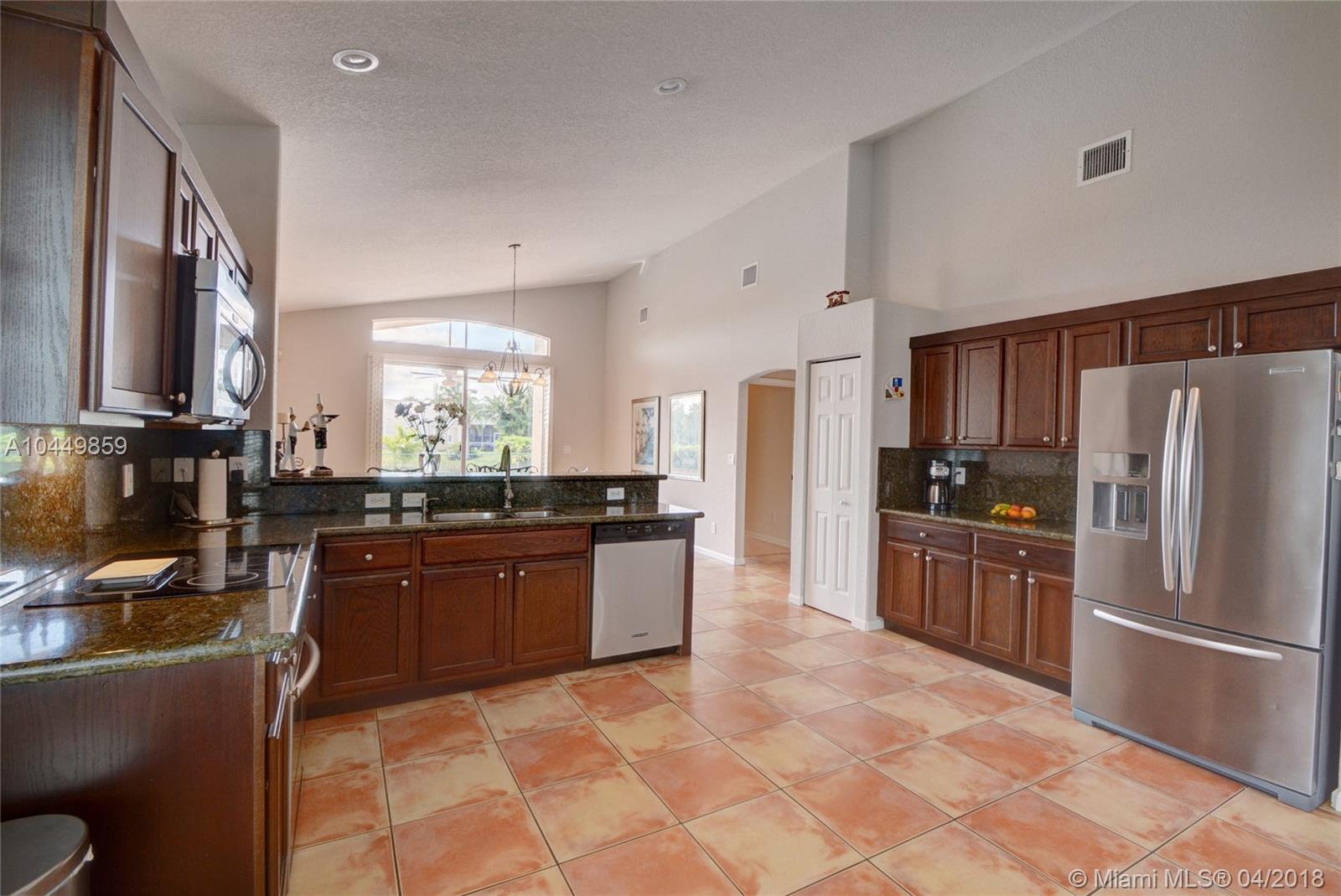 This house has it all!. One story,large pie shaped waterfront lot, heated swimming pool, luscious fruit trees (mango, papaya, loquat, lemon, avocado), high volume ceilings, eat in kitchen, stainless steel appliances, granite countertops, new A/C 6 years ago, 18" tile floors in living areas, laminated in bedrooms, plantation shutters, wood blinds. Coral Shores is a gated community, all A+ rated schools. Travertine table and mantle stays with property.Financed offers must include desktop underwriting approval.