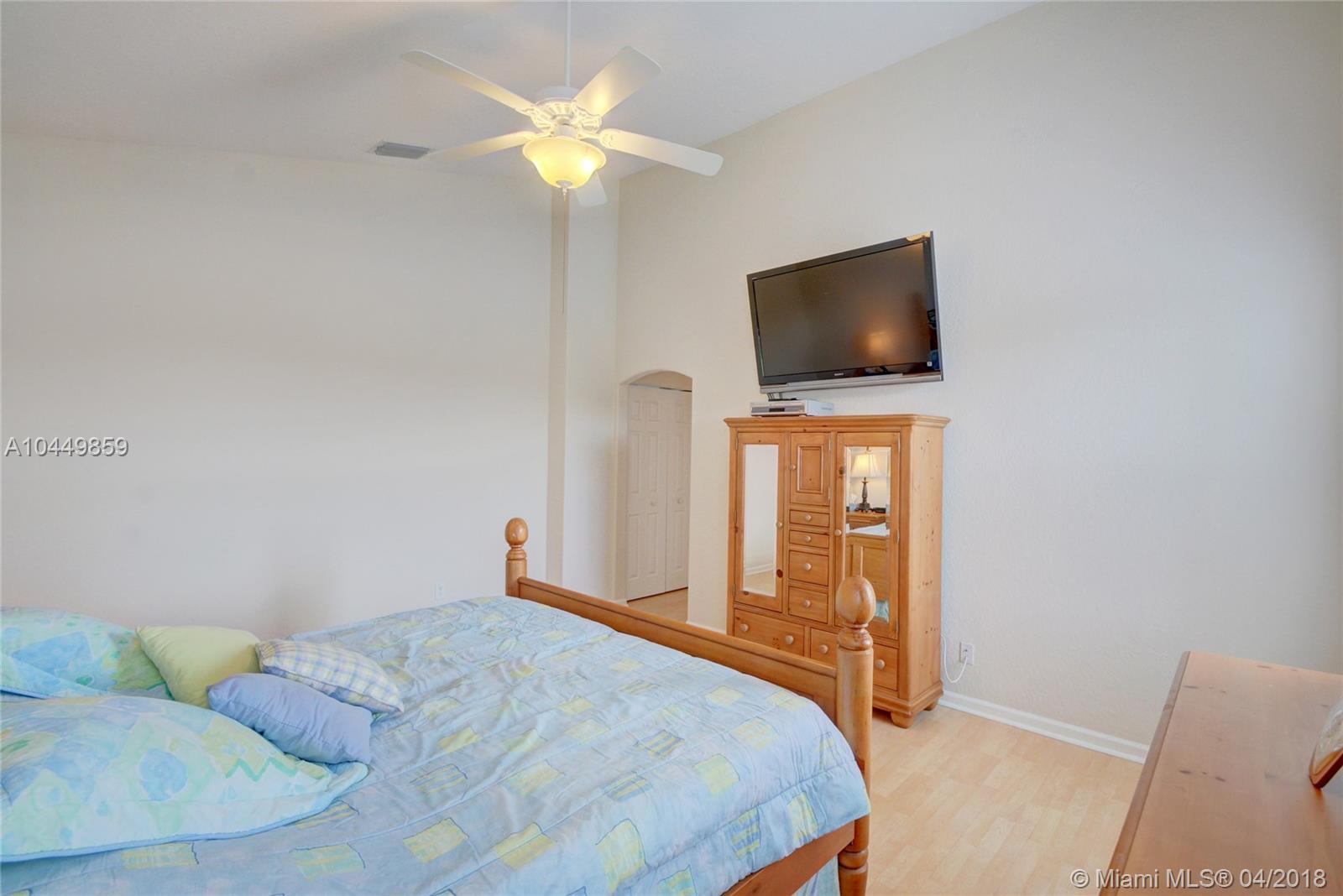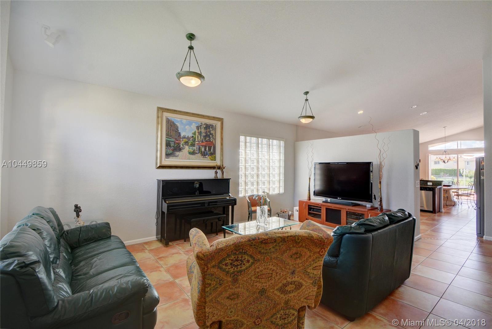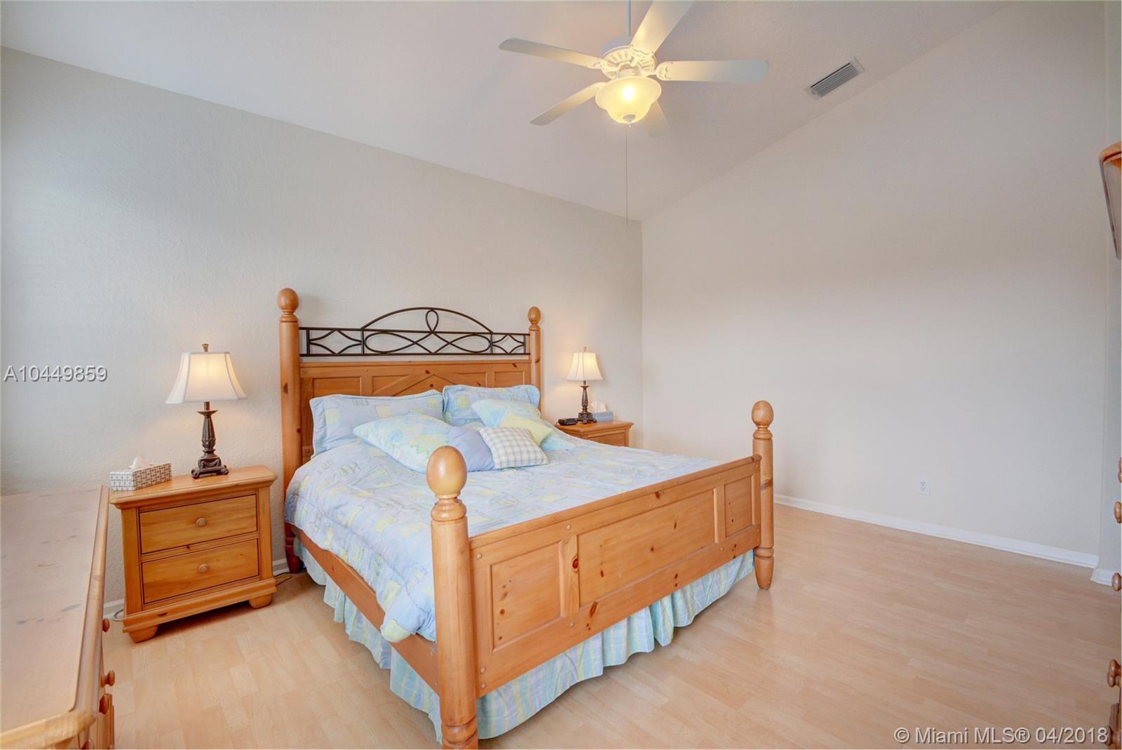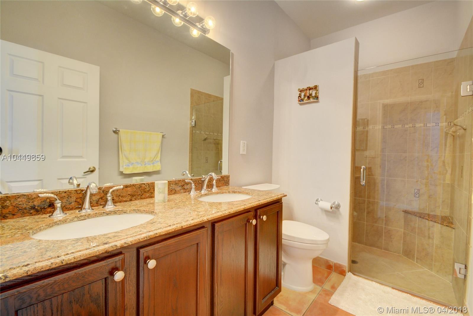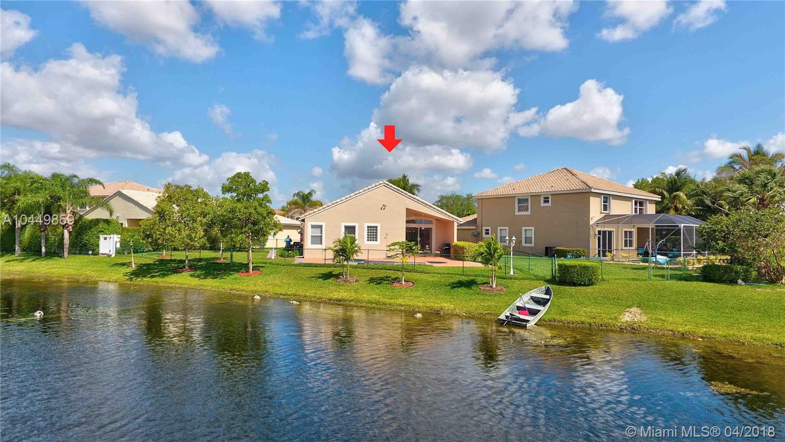 This house has it all!. One story,large pie shaped waterfront lot, heated swimming pool, luscious fruit trees (mango, papaya, loquat, lemon, avocado), high volume ceilings, eat in kitchen, stainless steel appliances, granite countertops, new A/C 6 years ago, 18" tile floors in living areas, laminated in bedrooms, plantation shutters, wood blinds. Coral Shores is a gated community, all A+ rated schools. Travertine table and mantle stays with property.Financed offers must include desktop underwriting approval.