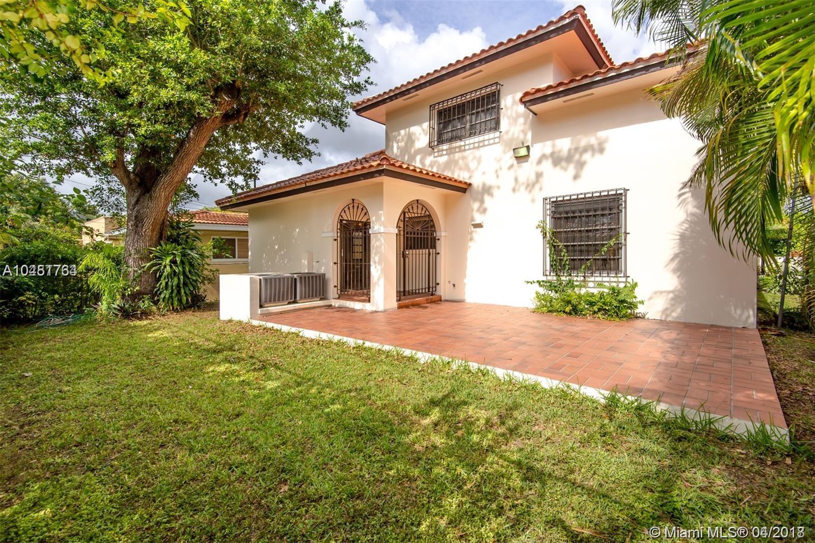 Spacious north Gables two-story home,3 bed/ 2.5 baths/ 2-car garage on a beautiful tree lined street. Home is 2490 SF house on a 5250 SF lot including a large patio in the backyard for entertaining. Bedrooms are on 2nd floor and master bedroom has a balcony. Living and dining rooms have 16' tall ceilings while bedrooms have 9' ceilings. Family room can be converted into 4th bedroom. Recently painted inside and out and features a home central vacuum system and 2 central A/C units. New neighborhood park on the street. Minutes from downtown Coral Gables, restaurants, shops, schools, youth center. home warranty available.