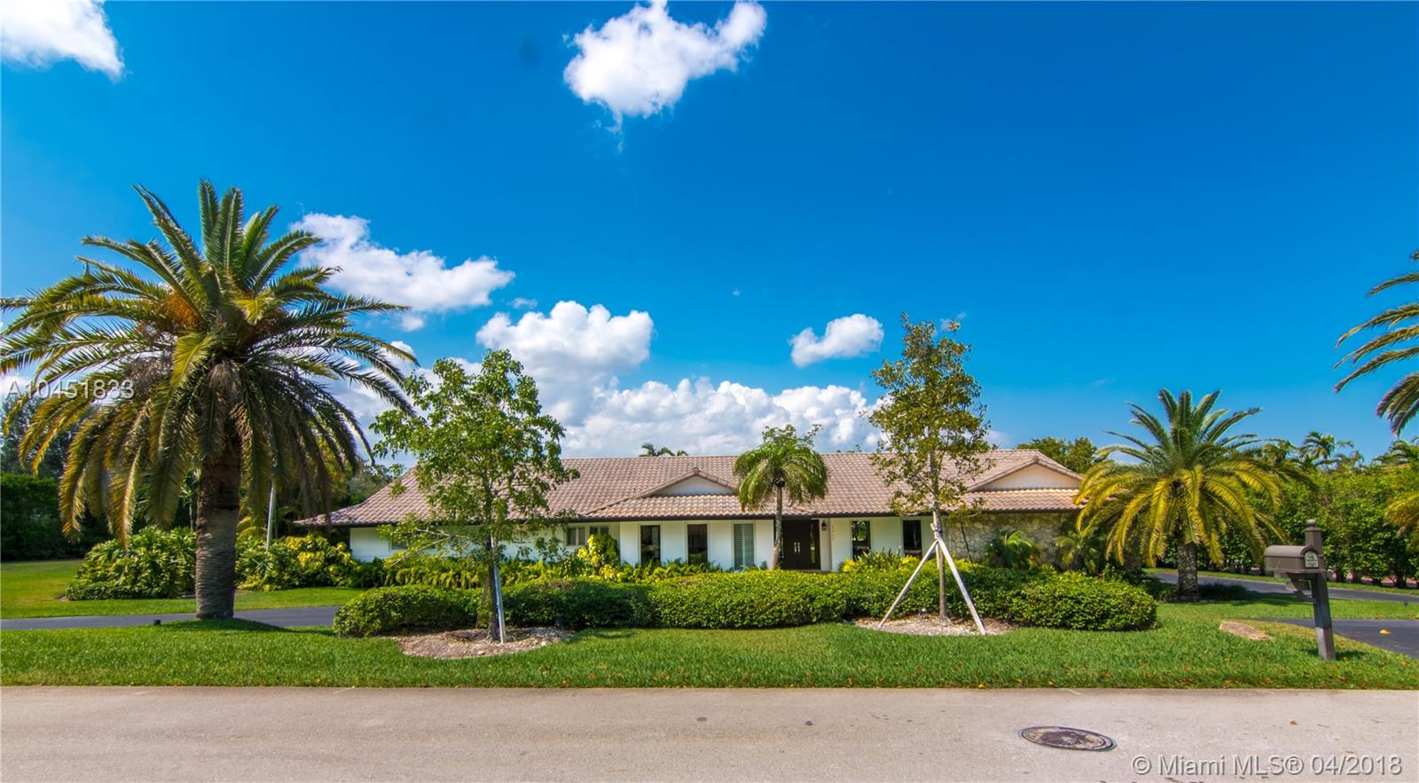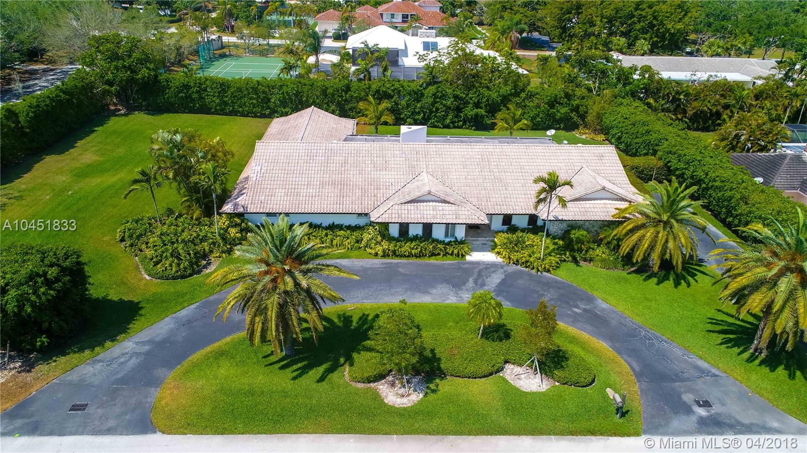 Completely remodeled home in prestigious Pine Bay Estates, a walled and security patrolled community in Coral Gables. This private and secluded corner builder’s acre lot has sufficient room to expand home, build tennis court or just continue using field as playground. The inviting, open and airy spaces within house flow seamlessly. The excellent gourmet kitchen, newly refurbished bathrooms and ample walk-in closets make it truly comfortable living. Enjoy the covered terrace next to pool and spa. A truly move-in-ready gem!