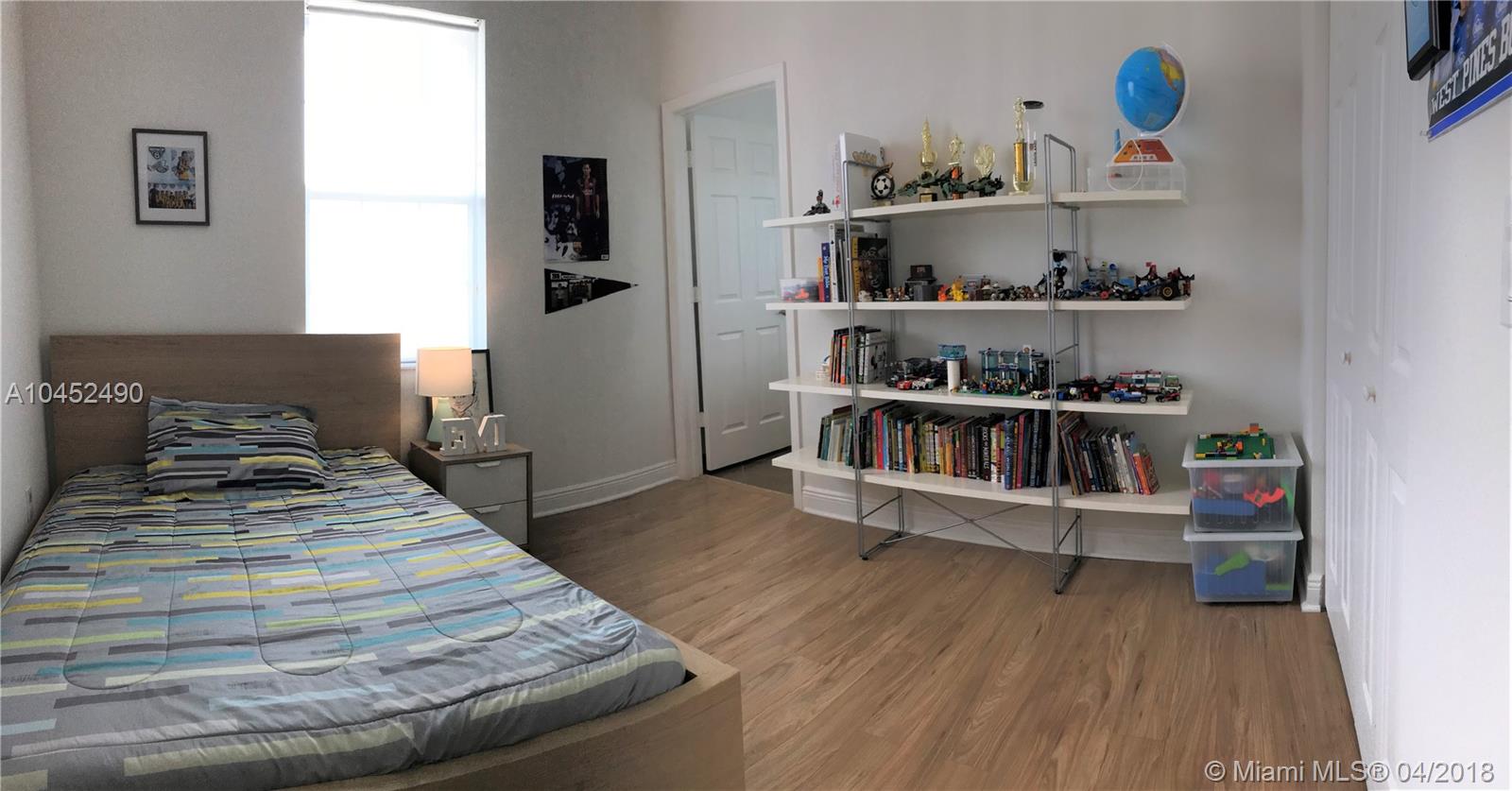 Beautiful Tri level Townhouse, with 20k plus in upgrades, a 3rd room on the first floor can be used as a bedroom or office. Living area, kitchen and laundry room on second floor and Master Bedroom and another bedroom each with its own bathroom on the third floor. Long Driveway for 5 Cars. Stainless Steel Appliances, Impact windows, Fire Sprinkler System. Built in 2013. Wood Floors, 5 Minutes to I-75 and Turnpike. 10 minutes to Pembroke Lakes Mall, Pembroke Gardens Mall, CB Smith Park. Within walking distance to Miramar City Hall, Arts Performing Center, Miramar Library. Jogging Path around Community Lake. Gated Community with phone entry system.Association includes Cable, Internet, Alarm System, Common areas maintenance including painting every 7 years, Pool, Clubhouse and Gym.