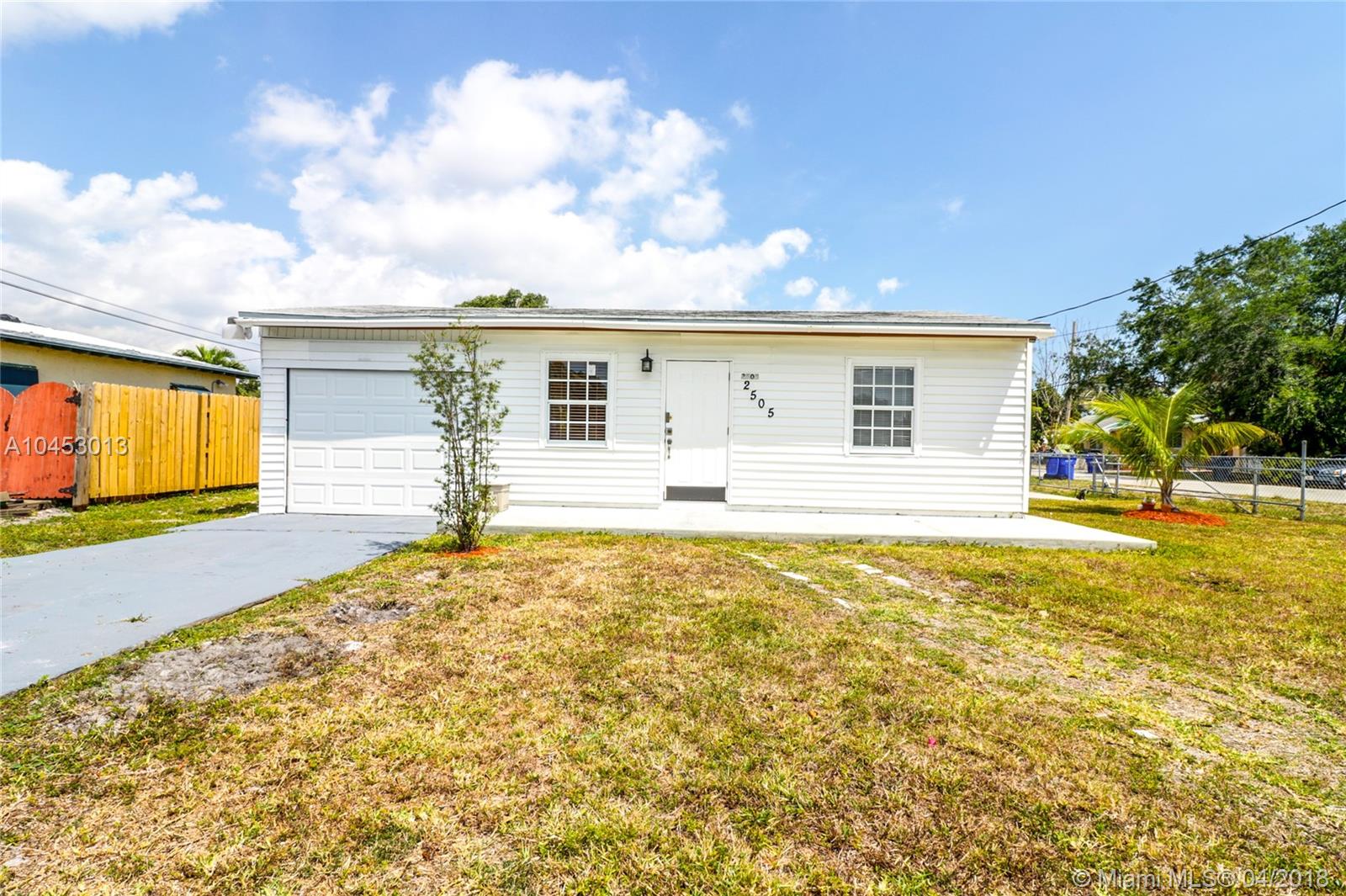 Just Remodeled 2 bedroom 1 bathroom corner Home for sale in upcoming neighborhood in Hollywood. Updated kitchen, bathroom, doors, windows, freshly painted, power washed floors. 7,006 sq ft size lot and 744 sq ft built. Clean Title with No leans or Violations. No association which makes it great for a quick closing. Very large patio and garden. Just 15 minutes from the Beach, 10 minutes away from Jhonsons Park, 5 minutes away from Federal dr and 3 minutes from I95. This property is owned by the same person who also owns the property next door, the 2509 grant street, Hollywood. Both properties can be sold together. For more information please call Listing agent.