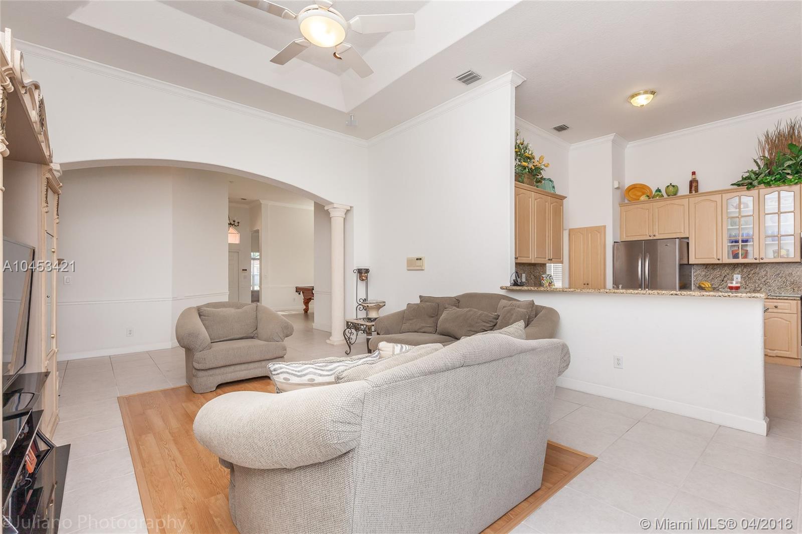 Beautiful 1-story waterfront home in the highly sought after community of Spring Valley. 13ft ceilings give this home an open feel. Large eat-in kitchen with 42 inch cabinets, granite countertops and brand new stainless steel appliances. Separate dining room, family room and living room areas. Large master bedroom. Large master bath w/ his and hers separate sinks, w/ separate roman tub and shower. California closets in every bedroom. Chair rails and crown molding throughout. Built-in storage in the 3-car garage. Plenty of space for pool. Amenities include swimming pool, tennis courts, basketball court, large playground, beautiful sidewalks and jogging paths. Perfectly located between 2 publix super markets, a whole foods, 2 movie theatres, restaurants and 2 malls. Great schools!