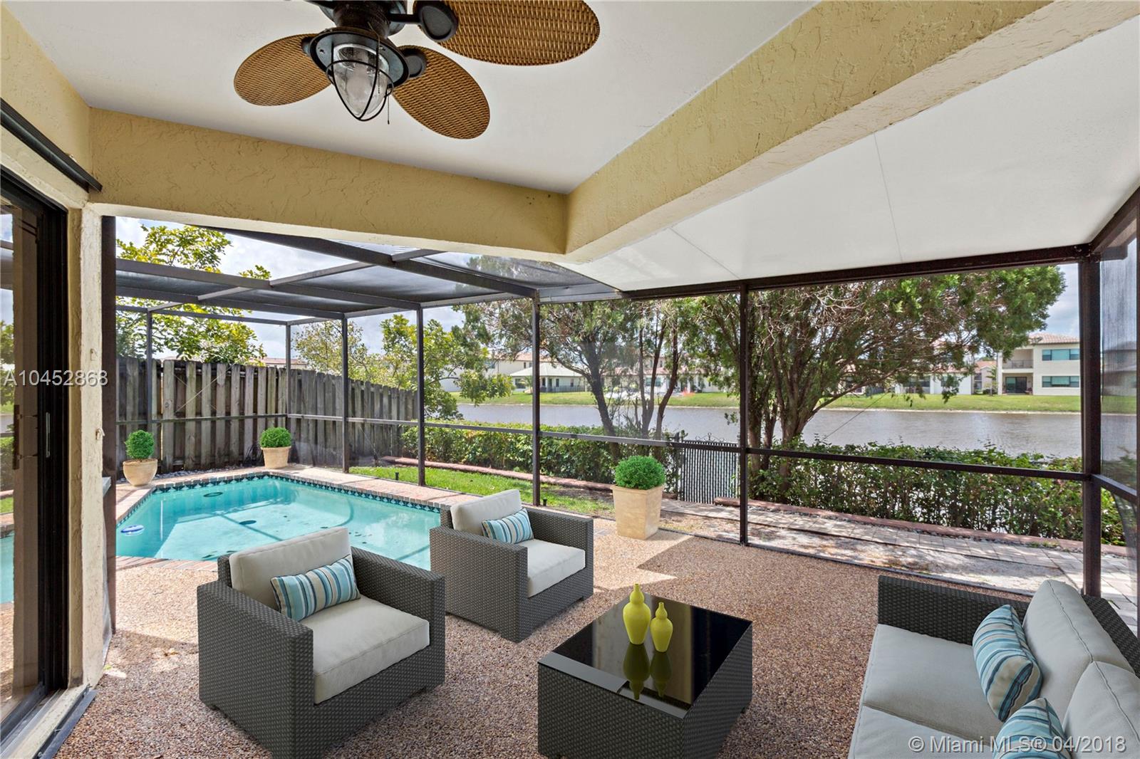 TURN KEY LAKEFRONT POOL HOME! Fresh Painted Interior! High Volume Ceilings, Tile floor throughout Living Areas, and Wood Laminate in Bedrooms. NO Carpet! Remodeled Kitchen (5 years) with thick slab granite countertops. Newer AC, only 2 years old. Newer Washer & Dryer only 2 Years old. Newer Roof, 10 years old. Screened in Pool and Patio overlooking the lake! Hurricane Shutters.