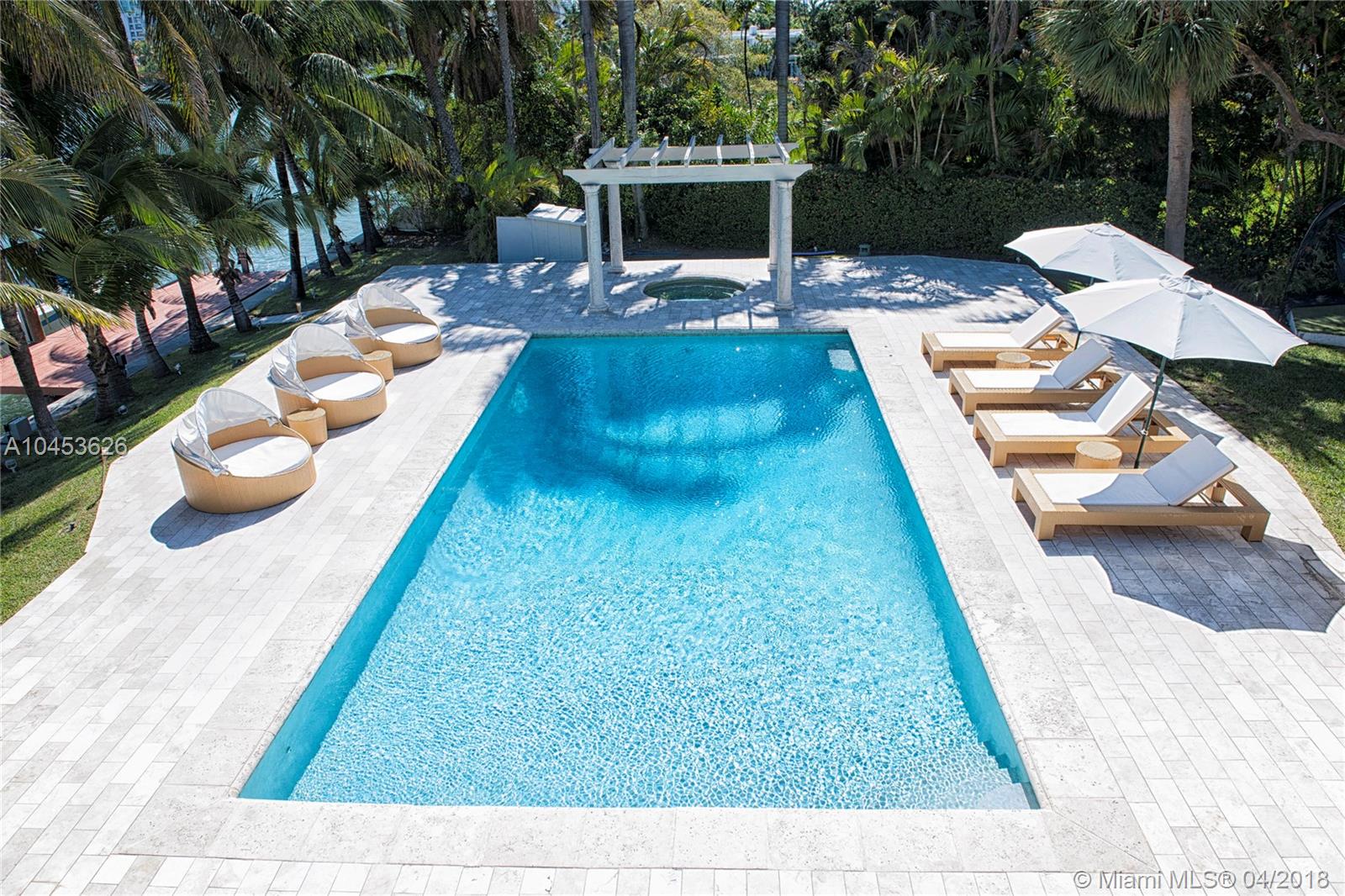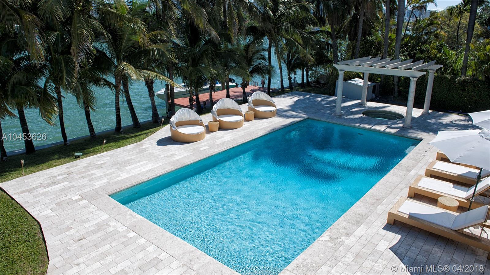 33,000 sq foot lot with 175 Ft of waterfront on the exclusive gated La Gorce Island. The mansion features a sweeping driveway with a stately entrance, luxurious wet bar, gourmet kitchen and built in wine cellar. The master suite occupies the second floor with his and hers bathrooms and office. All bathrooms are equipped with the latest innovation of rain showers and smart toilets. Property features separate guest house. La Gorce Island is guard-gated and patrolled by land and sea 24 hours a day. Excellent property to further renovate or build your dream home
