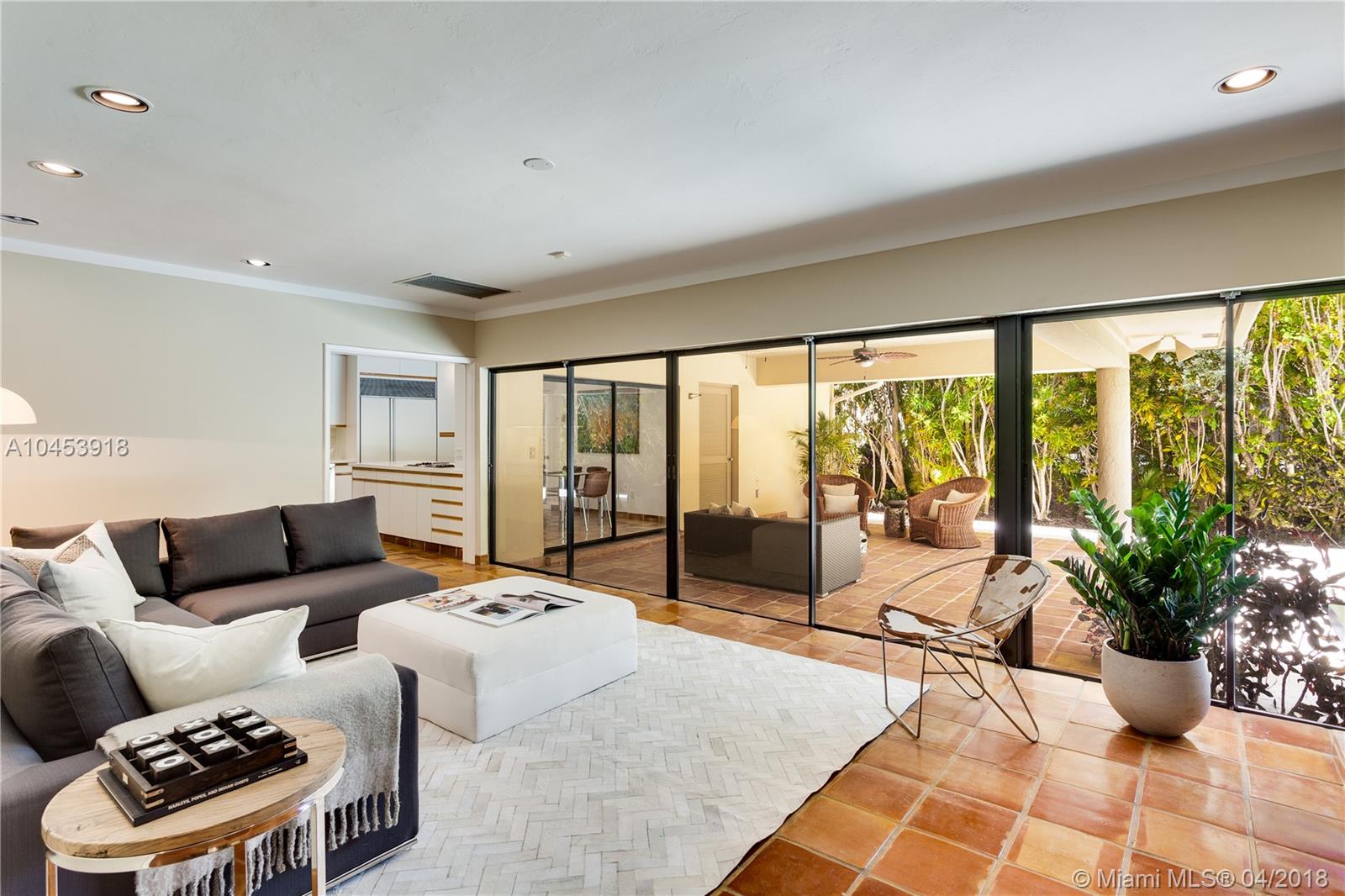 A prestigious and coveted South Gables neighborhood home with a large family room, formal dining and living as well as five bedrooms, four full bathrooms and guest half bath, plus an office complete with built-ins, provides plenty of space for everyone. Three private courtyards are perfect for quiet restorative moments while the pool and patio are ideal for social and family gatherings. Unique Coral rock wall in foyer, shining tile floors, cedar-lined master closets, built-in display system in family room and mosquito misting system. Located across the street from charming Sunrise Park. A Very Special Home.