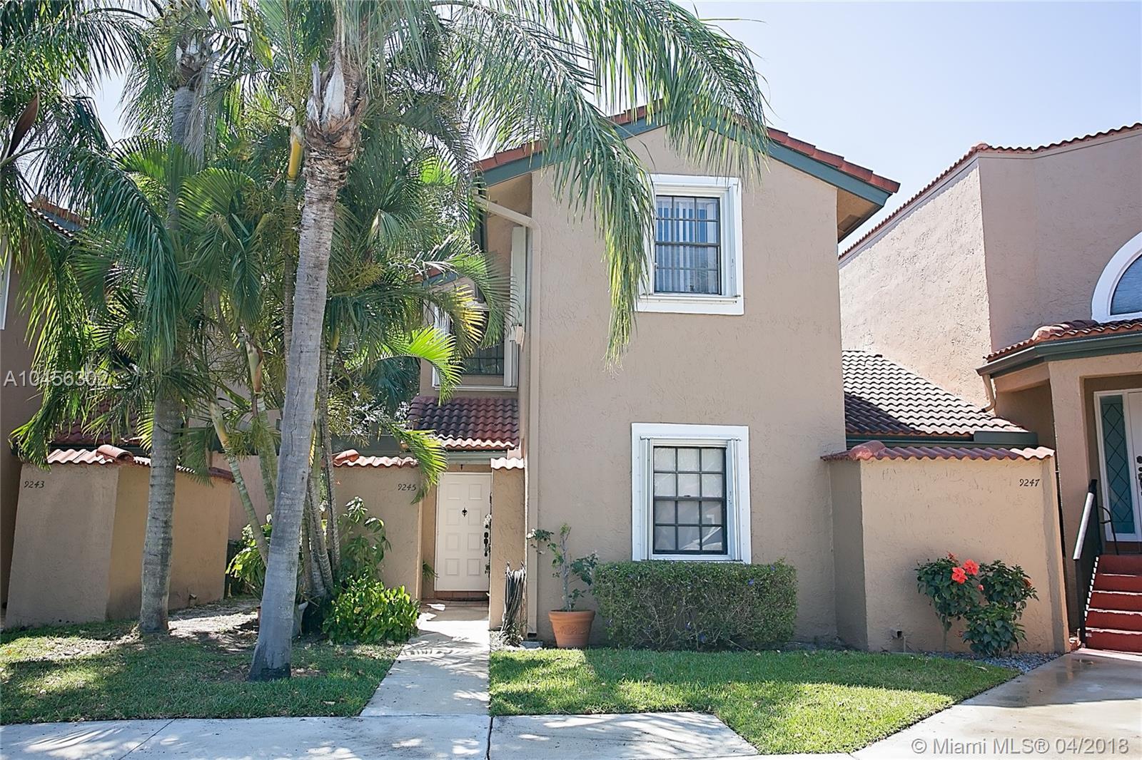 This tastefully updated 3 bedroom 3 bathroom townhouse has a private setting with no neighbors behind. Patio is enclosed and currently used as dining area. Remodeled kitchen (2013) with additional cabinets and trendy tiled backsplash. Spacious great room accommodates living area and dining room. Spacious master bedroom has room for a sitting area. Large neutral tile downstairs (2015) and wood floors upstairs. All bathrooms have updated (2013) cabinets and fixtures and downstairs bathroom completely retiled. One bedroom and one bathroom on entry level. Lots of closets through out for extra storage. A/C installed in 2016. Accordion shutters. Maintenance includes building exterior and roof repairs. Gated community. Amenities include pool and children's play area.