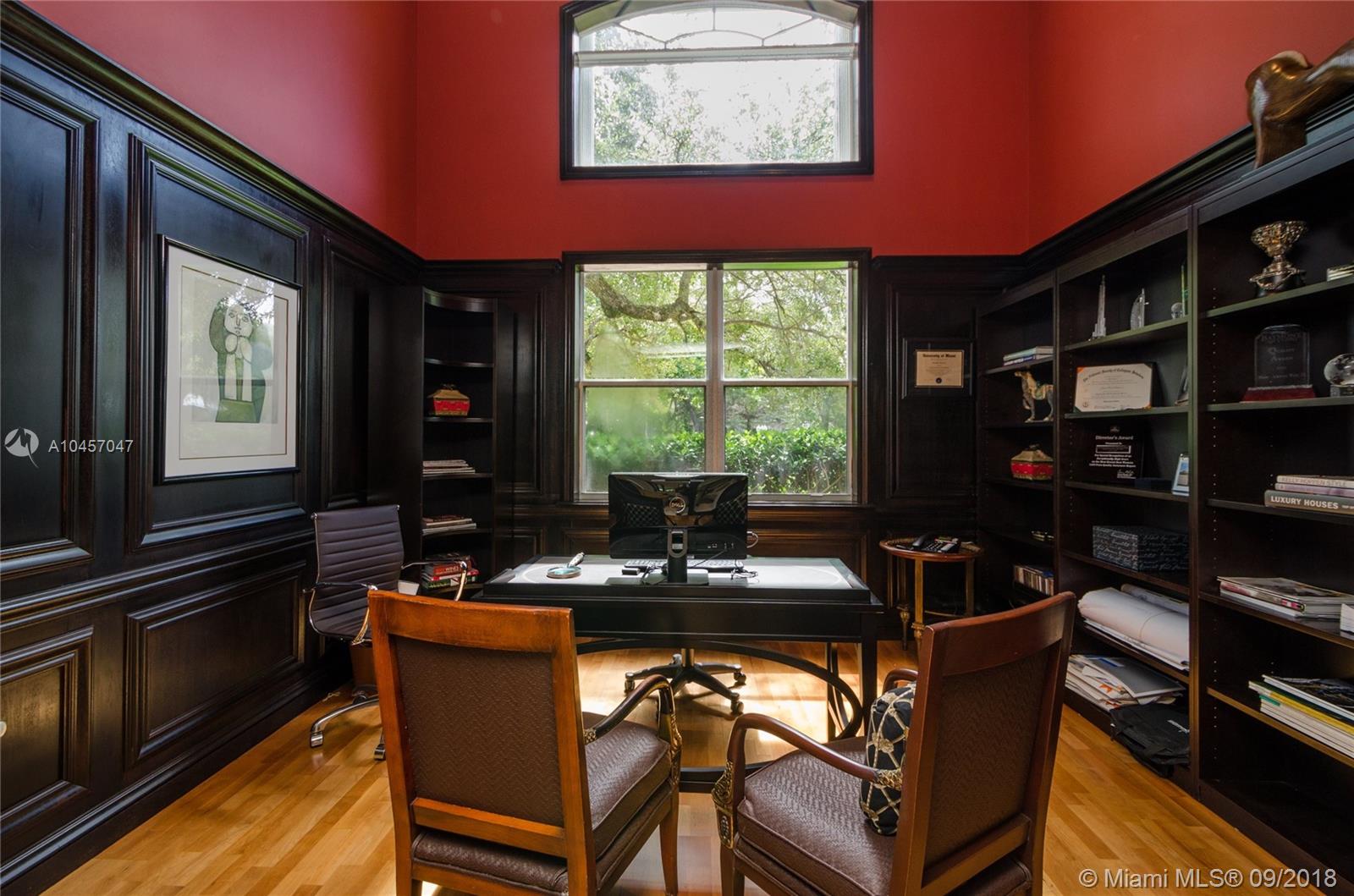 Beautiful 2 story Euro-Traditional style estate located in quiet, gated Pinecrest enclave of 5 homes! Expansive open floor plan with volume ceilings and French doors throughout. All luxurious appointments and amenities. Gorgeous living and formal dining rooms. Amazing recreation/family room with wine cellar, full bar. Home theater, office, gym. Surround system. Brand new 2017 modern kitchen. Separate maids room. Lavish master suite. Marble and wood floors. Stunning and lush grounds. Inviting open pool. Summer kitchen. A must see!!