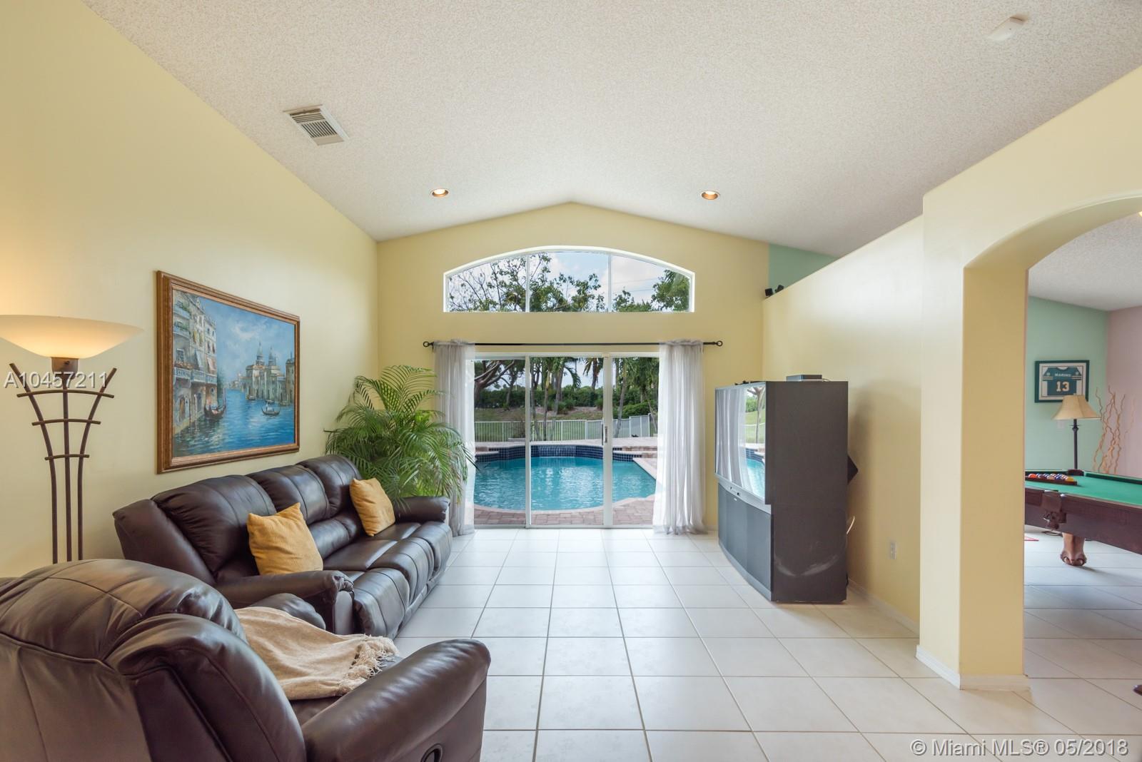 BEAUTIFUL ONE-STORY LAKE FRONT POOL HOME WITH 3 BEDROOMS AND 2 BATHS, SPLIT FLOOR PLAN WITH SEPARATE DINING ROOM AND LIVING ROOM OVERLOOKING THE POOL. KITCHEN AND FAMILY ROOM OVERLOOKS THE PEACEFUL PATIO WITH NO NEIGHBORS IN THE BACK. THE HOME SITS ON A VERY LARGE LOT WITH A SQUARE FOOTAGE OF 9,101. GUARD GATED COMMUNITY.