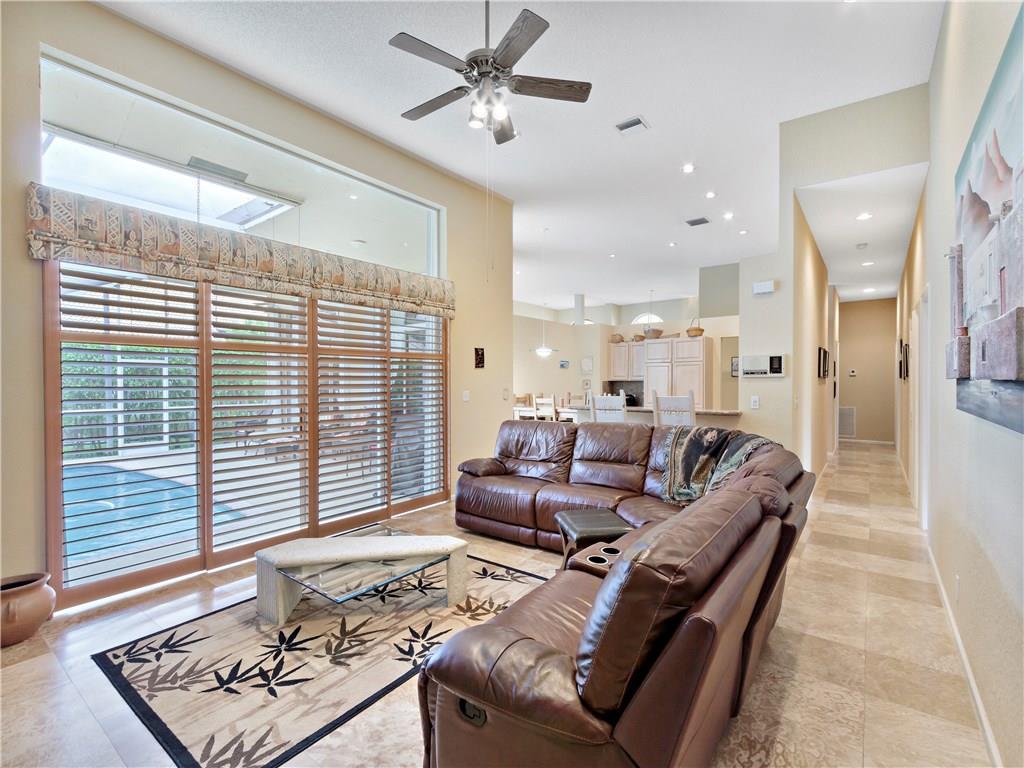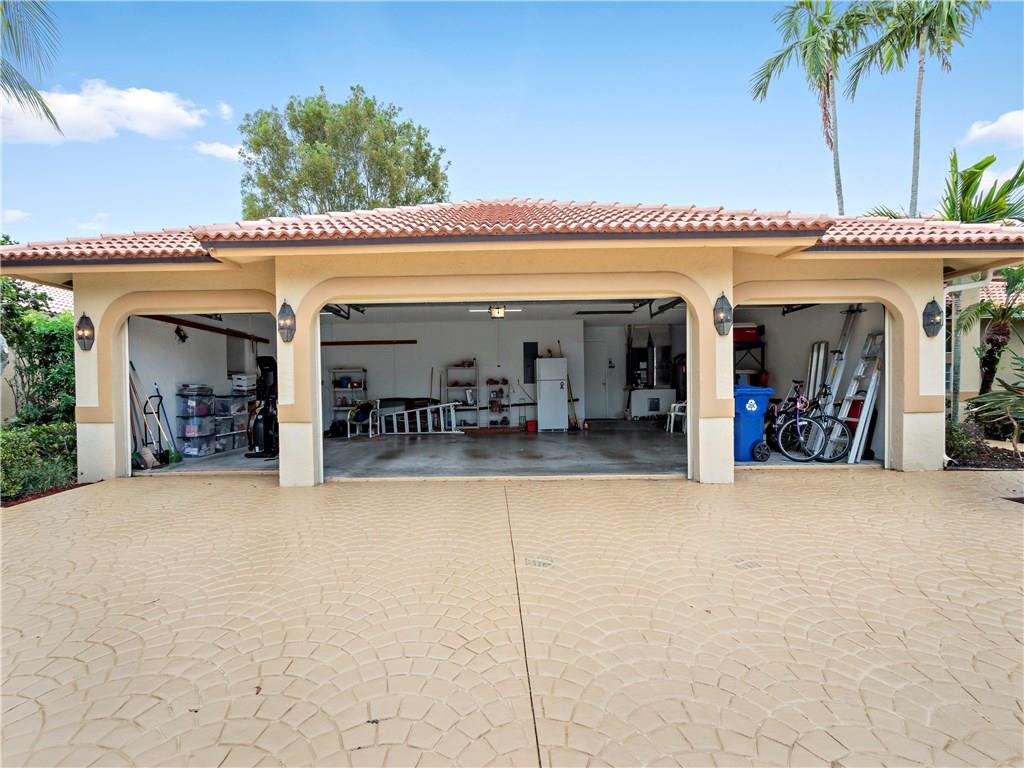 Light & bright 5 bedroom, 4 bath beauty on private cul-de-sac in the gated golf course community of Eagle Trace. Spectacular home in move-in condition, Travertine flooring, neutral colors throughout. Stunning Plantation shutters. Kitchen w/pantry, granite & stainless. Mechanical systems & roof in good condition.Tons of storage and a rare 4-car garage! Volume ceilings & Hi-Hats everywhere! Gorgeous screened pool with spa and huge backyard. Great home for entertaining and raising children.
