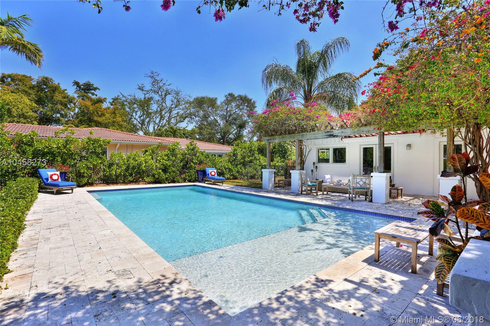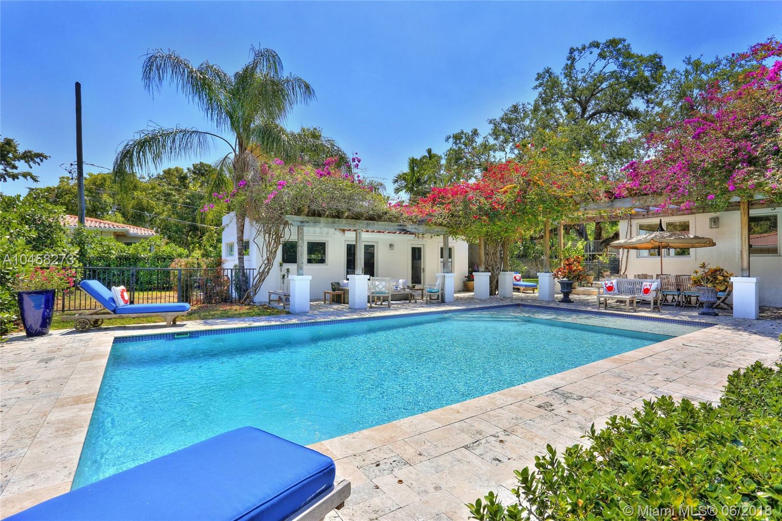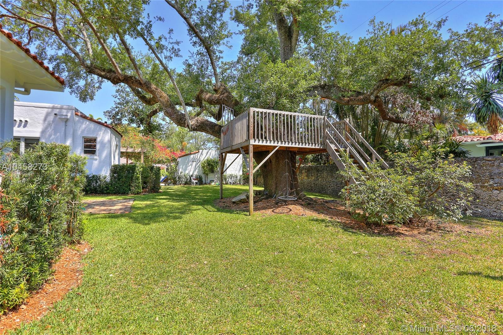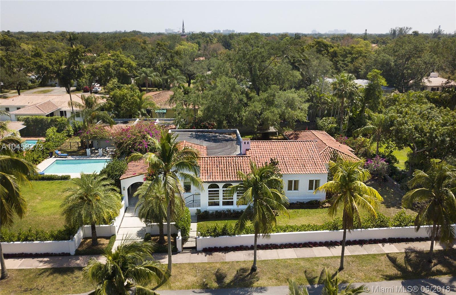 Be amazed by this magical walled, gated, & completely updated Old Spanish on one of the best streets in the Golden Triangle. 18,548sf lot has new pool w/ lounging area, lovely trellis, amazing treehouse, & Biltmore views. Enter to a large, light-filled foyer that opens to the formal living room w/ fireplace & wood floors & then the formal dining rm beyond. Updated Trimline kitchen w/ German Bio Glass counters, high end appliances & beautiful breakfast rm. The master BR addition has a stunning new BA featuring hand-made Walker Zanger tile, soaking tub, & shower. In addition to the 4 BR & 3 BA in the main house, there is also a 1 BR/1 BA guest house. Wonderful spaces, high ceilings, impact windows through most, wood beamed ceilings & built-ins in the fam rm, & very private garden.