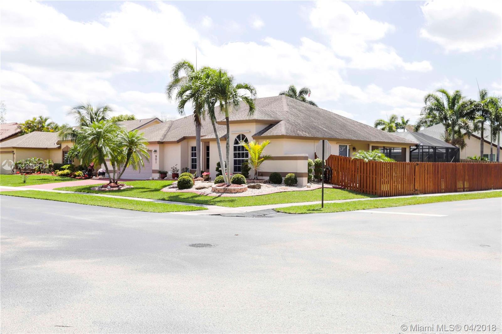 Meticulously kept inside and out 3 bed/ 2 bath pool home on a beautifully landscaped fenced in corner lot. Located in highly desirable New River Estates. Home features a Formal Dining, Living Room, Family room, Breakfast area and interior laundry room. Kitchen features a pass thru window to patio. Oversize master bedroom includes a 6x8 walk in closet. Tiled thru-out family room and kitchen. Newly installed laminate flooring in all bedrooms, living and dining room. Sliding tinted glass doors in family room and master bedroom lead out to relaxing screened in pool area. Home is located near major highways 595/ I-75 and Sawgrass Expressway. Home is located close to Weston, Cleveland Clinic, restaurants, shopping, parks and more. Zoned for Davie schools. This home will not last!