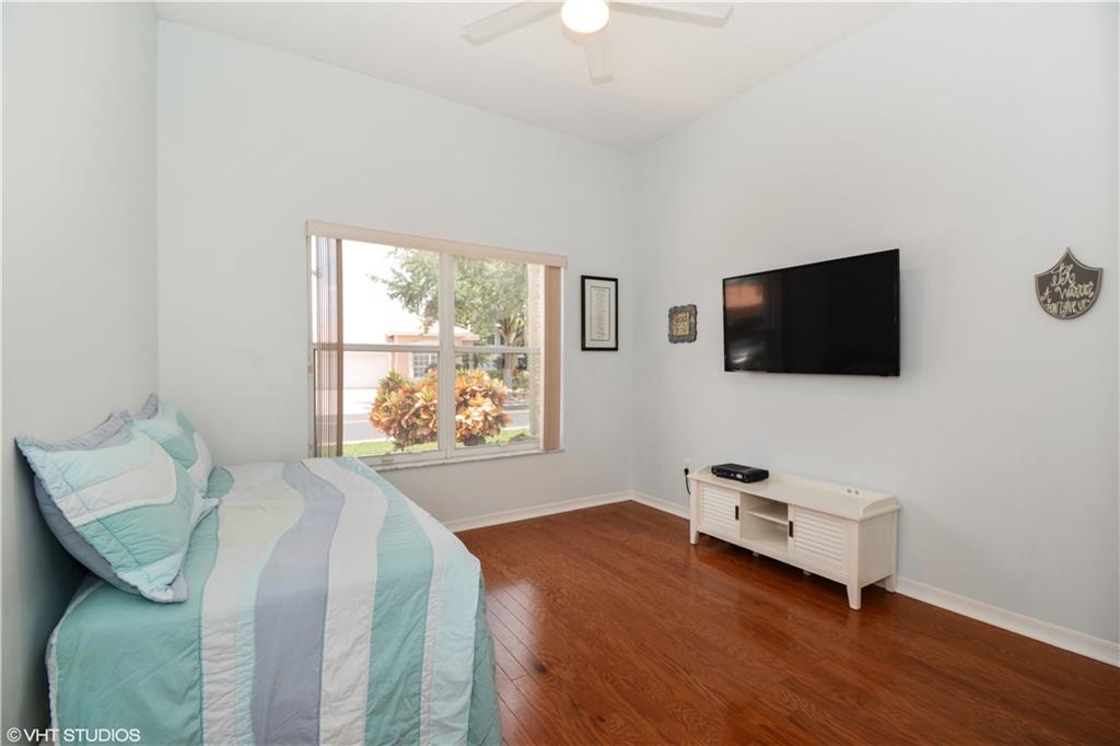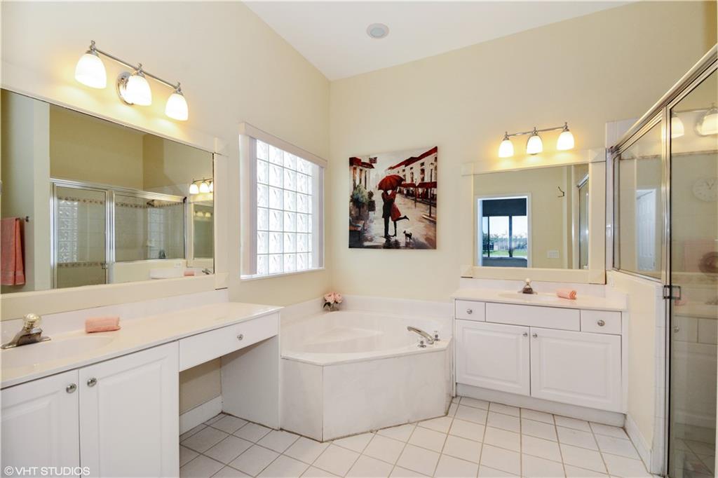 Beautiful wide lake views await you in this immaculate and upgraded home. Breathe in the serenity! The white gourmet kitchen with granite counter tops is a cook's delight. Beautiful flooring throughout. No carpet. French doors, plenty of closets and an open, spacious floor plan with a split bedroom plan. Luxurious master bath. Light and bright. Storm shutters. Lovely patio for relaxing with lake views. Manicured, gated community. Fourth bedroom being used as an office. Ideal location, shopping and dining.