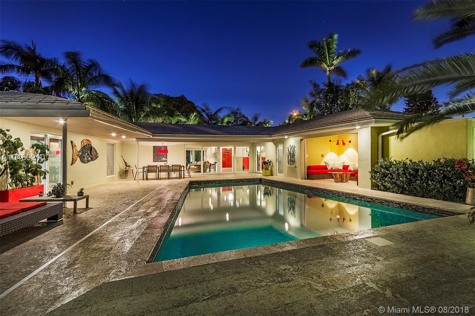 This 4000 square foot home boasts a master suite with dressing room, an office or bedroom with en-suite full bath; and a guest suite at the opposite end of the home. Elevated custom kitchen. indoor-outdoor with enormous chef’s kitchen, laundry, & 1200 square foot living room and a poolside cabana with yachting/pool bathroom. In addition to the expertly restored original terrazzo, the residence has been fully upgraded to current hurricane standards with new roof, strapped trusses, impact windows, hurricane fabric, and a whole house natural gas fired generator. Finally, this turn-key property has a new stone dock, & botanical garden quality illuminated landscaping. Foam insulated attic.