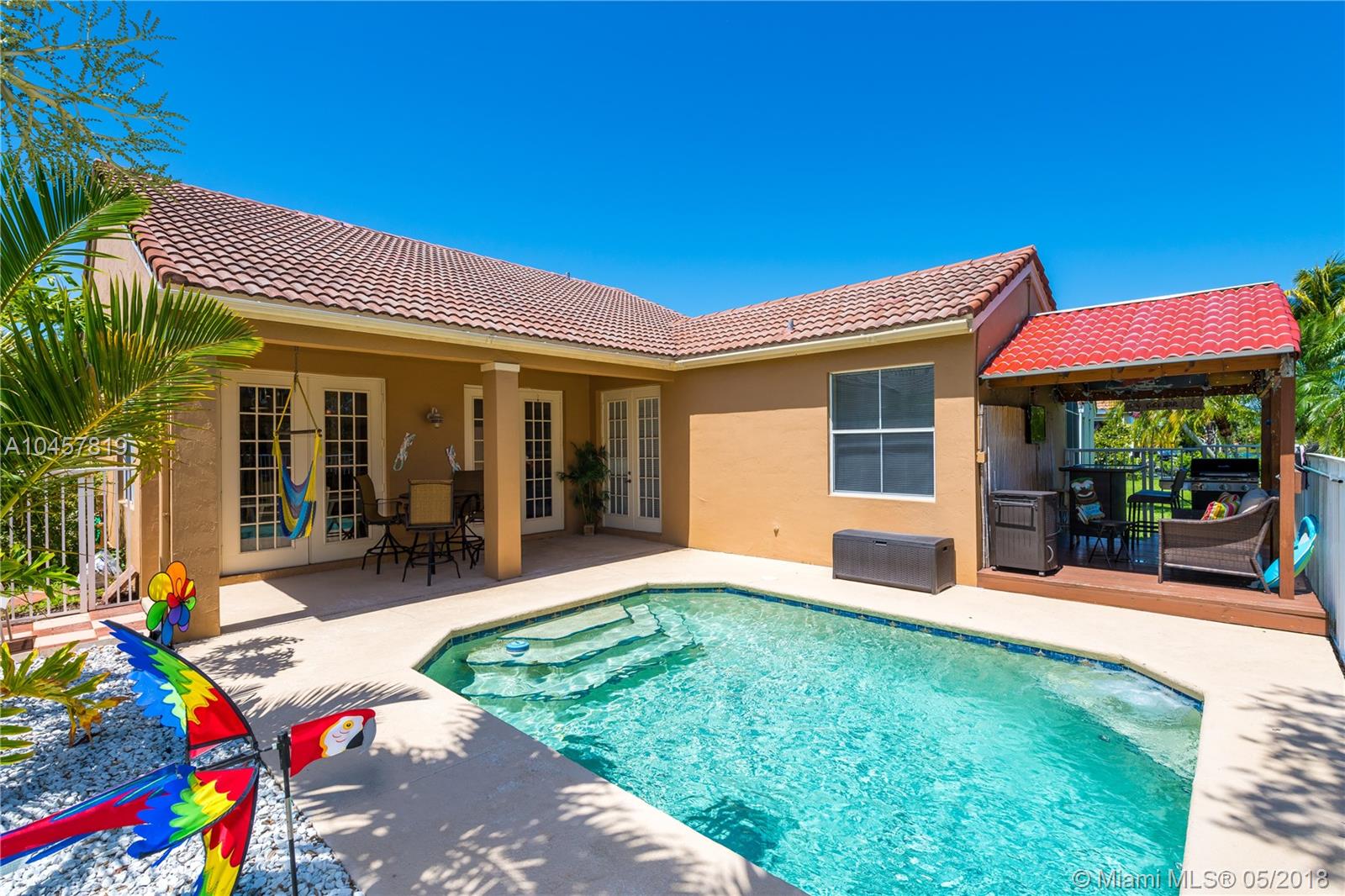 Meticulously maintained, 3/2 lake view and pool with Tiki Bar home in a desirable 24/7 Gated Community in Weston. You will fall in love with the lake view and pool. This spotless home features: Remodeled Master's bedroom bathroom and kitchen, new A/C, extended paved driveway with permit. Close to I-75, Restaurants, Shopping Centers, Banks, Cinema and A+ rated schools: Eagle Point Elementary School, Tequesta Trace Middle School and Cypress Bay High School. Must see now!!!