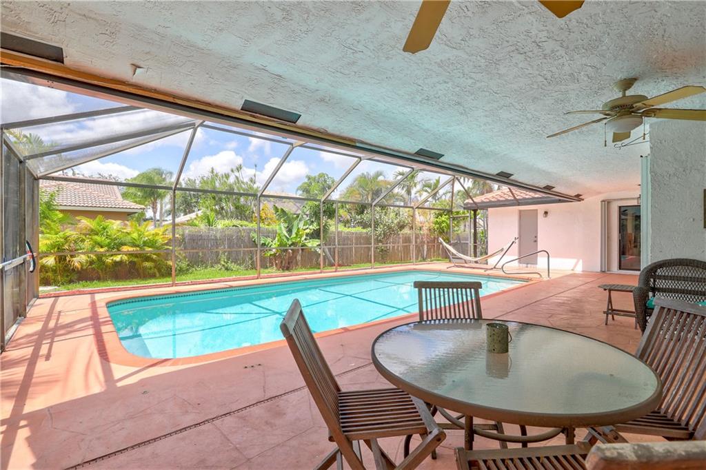 Brand New Roof on this Updated Home on Private Cul-De-Sac. All Impact Windows, Remodeled Granite Kitchen w/ Stainless Appliances (2013), All tile floors, Remodeled Bathrooms, Trane AC (2012), Fenced and private Yard, Screened in Oversize Heated & Salt Pool, Covered Terrace for entertaining, Well water for lawn, Mango & Banana Trees.