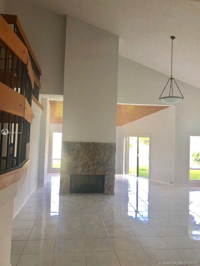 Beautiful and very large entertaining 5/3 waterfront pool home w/a huge yard to play! Peaceful waterway view w/a sparkling pool to enjoy the good life! Extremely high vaulted ceilings & a warm, cozy stone fireplace! Renovated Kitchen and the 3 bathrooms. The property is freshly painted from inside and outside!!4 bedrooms are located in the first floor and a Very large master bedroom w/ two closets & Romeo and Juliet balcony with French doors overlooking the living area is taking the whole second floor. The Driveway and the pool Deck are made with an expensive Turkish stone! This is the BIGGEST HOUSE in Jacaranda lakes. HOA is ONLY $450 a year!!! 5 min driving to AMERICAN HERITAGE SCHOOL, and mins away from parks, shopping centers and other schools VACANT ON LOCK-BOX