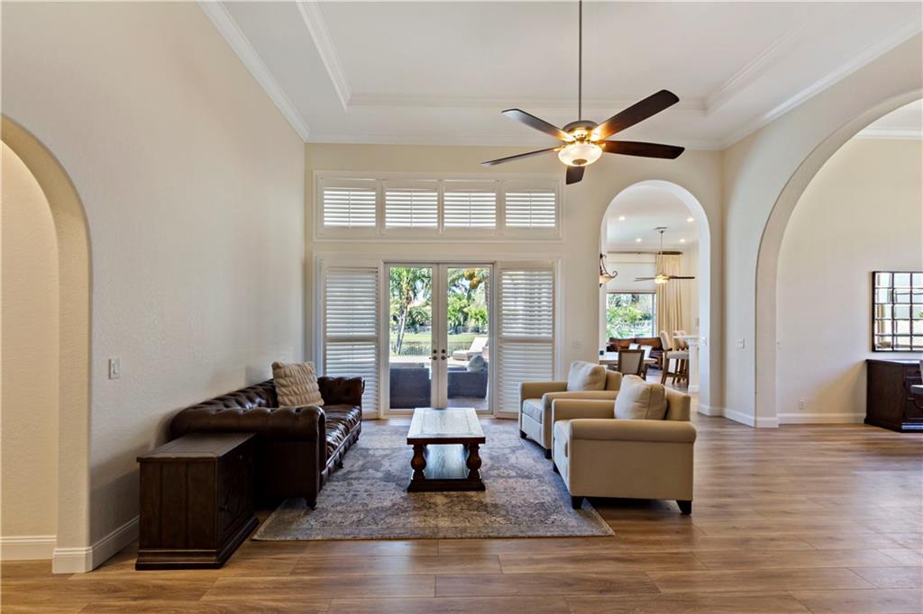 NO NEED TO BUILD! THIS BEAUTIFULLY UPDATED HOME HAS IT ALL! FEATURES INCLUDE CROWN MOLDING, FRENCH DOORS, PLANTATION SHUTTERS, BUILT-IN CLOSETS, DESIGNER FIXTURES & CUSTOM WINDOW TREATMENTS. OPEN FLOORPLAN WITH SOARING CEILINGS & OVERSIZED WINDOWS OVERLOOKING THE LAKE AND LUSH TROPICAL LANDSCAPING. OPEN KITCHEN WITH NEW QUARTZ COUNTERTOPS & SS APPLIANCES. SPACIOUS MASTER SUITE & LUXURIOUS MASTER BATHROOM WITH JACUZZI AND BEAUTIFUL SLATE FLOORS. PRIVATE FENCED BACKYARD WITH LARGE LANAI & SALT WATER POOL.