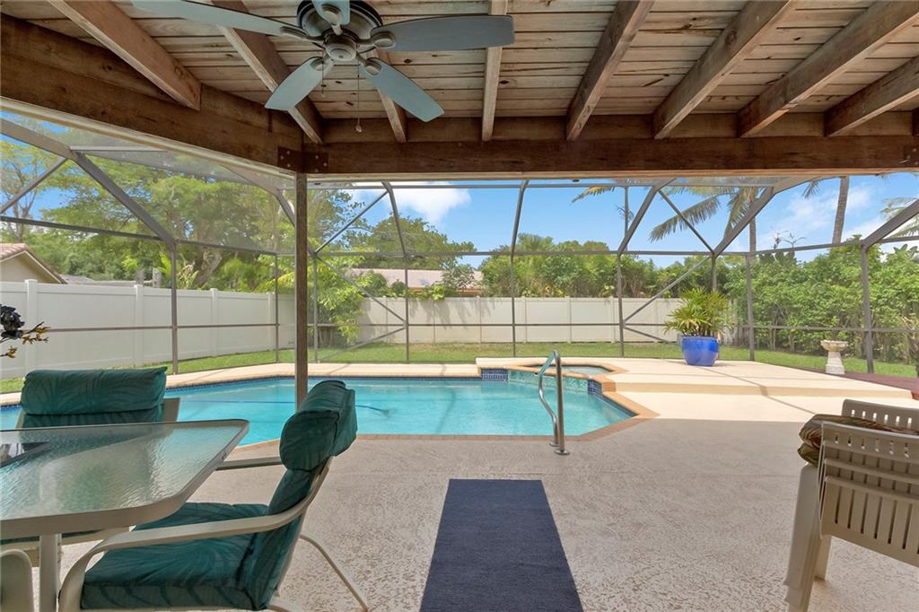 Beautifully kept single family home with 3 bedrooms and 2 baths and upgraded eat in kitchen, family room, formal dining room and living room, Impact windows. Enjoy this private backyard with a screened in pool and LED lights with a small spa, fenced back yard and immaculate landscaping. This home has a 2 car garage and a 5 car driveway. DON'T MISS THIS GREAT OPPORTUNITY!!! A home in the desirable Shadow Wood community with great schools and close to everything.