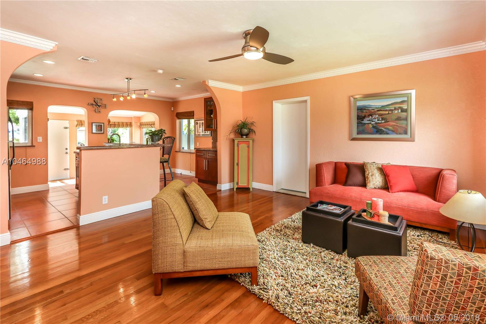 Incredible home located in a great central neighborhood. This 3bed/2bath Split floor plan features a living and formal dining room, with access to the outdoor deck. Recessed lighting, crown molding, & wood floors throughout the main living area. Open kitchen has granite counter tops, granite backsplash, wood cabinets, SS appliances, gas stove, and island with bar height seating. 2 full bathrooms. 1 equipped with a tub/shower combo. The other w/ a spacious standing shower. Great for entertaining w/ a beautifully landscaped tropical oasis. Large wood deck, fenced backyard with room for a pool. Sprinkler system, 4zone well water, Newer Gas Water Heater, Impact windows, Custom Blinds/Shades & termite warranty. Located minutes from Downtown Hollywood, FLL Intl Airport and major highways.