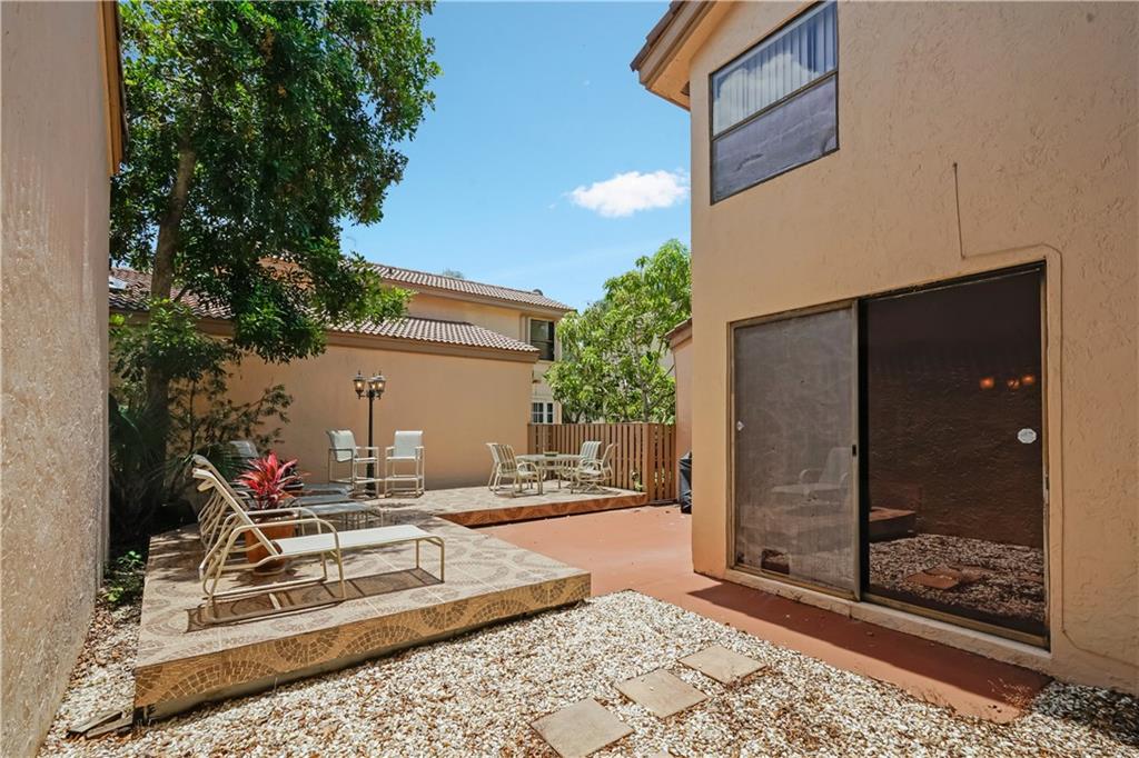 Location!Location!Location! 3 bedrooms, 2.5 baths. Two story. Master on first floor. Oversized patio with no up keep , great for entertaining. Master has walk in closets and upgraded bathroom. Floors are tile and carpet. Kitchen has solid wood cabinets with stainless appliances. 1 car garage. Community offers Olympic sized pool, clubhouse, playground, tennis, and yard maintenance.