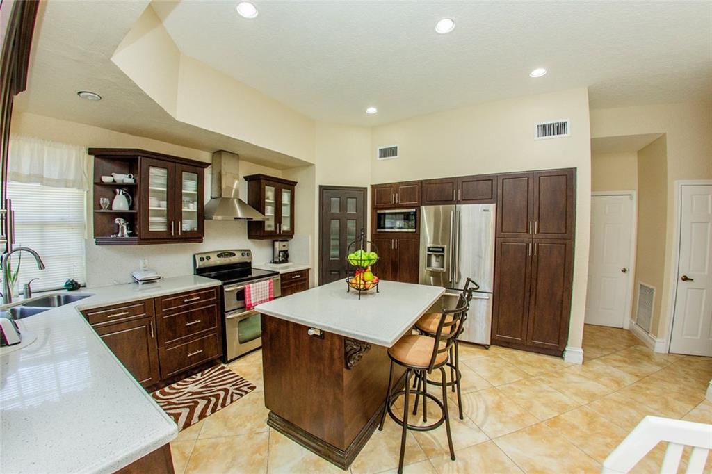 You Must see this Gorgeous Home,with stunning entrance, Formal Living Room and Dining room.The Family room with decorative Fireplace,and a view of the spectacular Pool/spa.One bedroom downstairs that can be use as an office. Kitchen have stainess steel appliances,Granite countertops and wood cabinets,Bathroom down stairs and Master bathroom are updated,Diagonal Tile throuout living areas,Bamboo Wood floors in bedrooms. Pool was recently refinished.Roof is 9 Years,Parking will fit 6 cars plus 2 in garage.