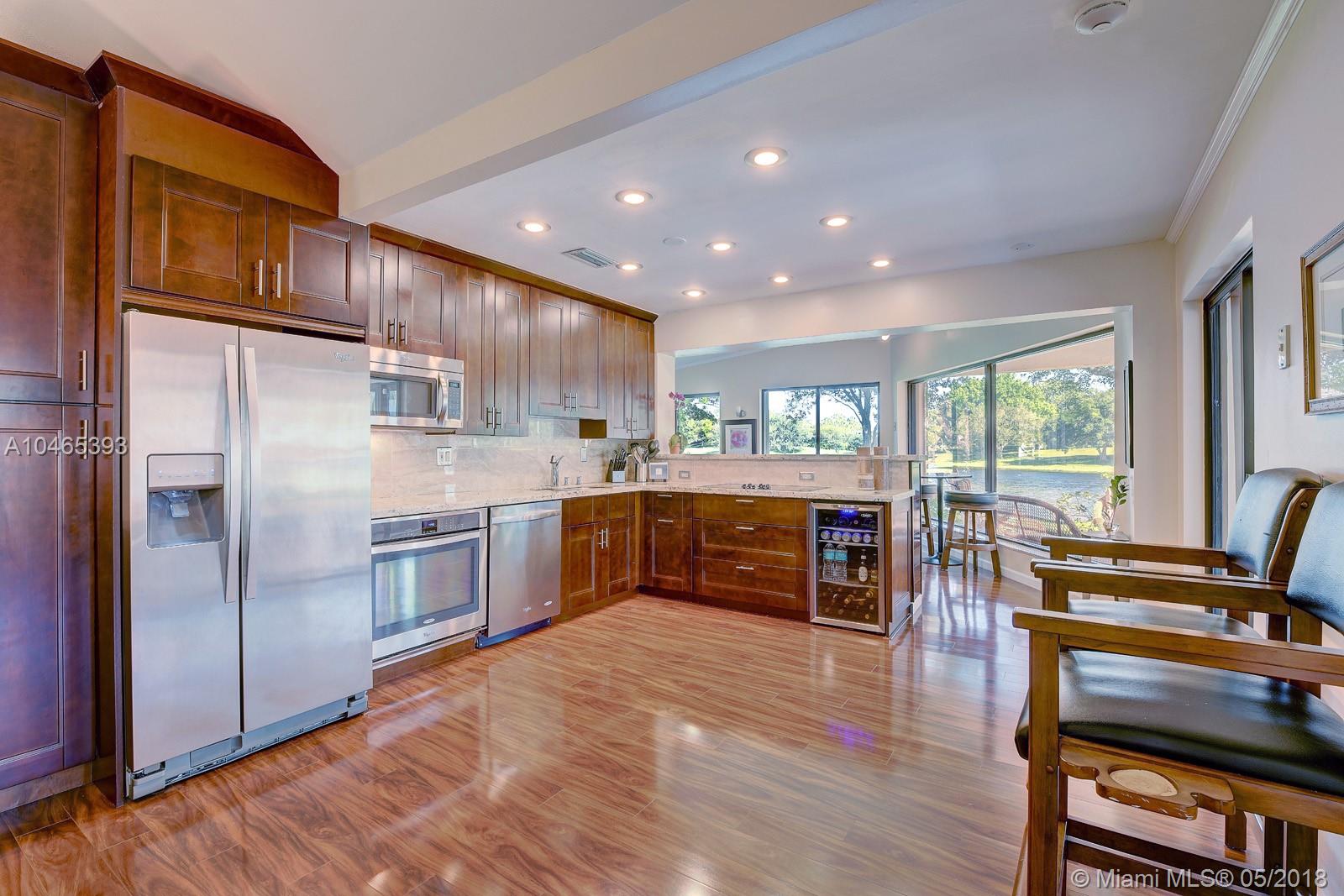 Million Dollar View...Here it is! Surround yourself with over 120 feet of waterfront panoramic lake views! Customized, fully updated floorplan has an abundance of living area. Relax in your contemporary Kitchen with 48" wood cabinets, granite, stainless appliances, wine fridge, and extra pantry storage with over-sized island for the largest buffets or elegant dining. New wood flooring extends into the family room with built-in speakers and expansive wall of windows to take in the views. Interior patio with AC, extends your living space to enjoy the lake's serenity or entertain a crowd. Master bedroom suite and Second bedroom both have updated contemporary baths. Large patios front and back, perfect for relaxing or entertaining. New AC & Security system. HOA includes lawn and tree trimming.