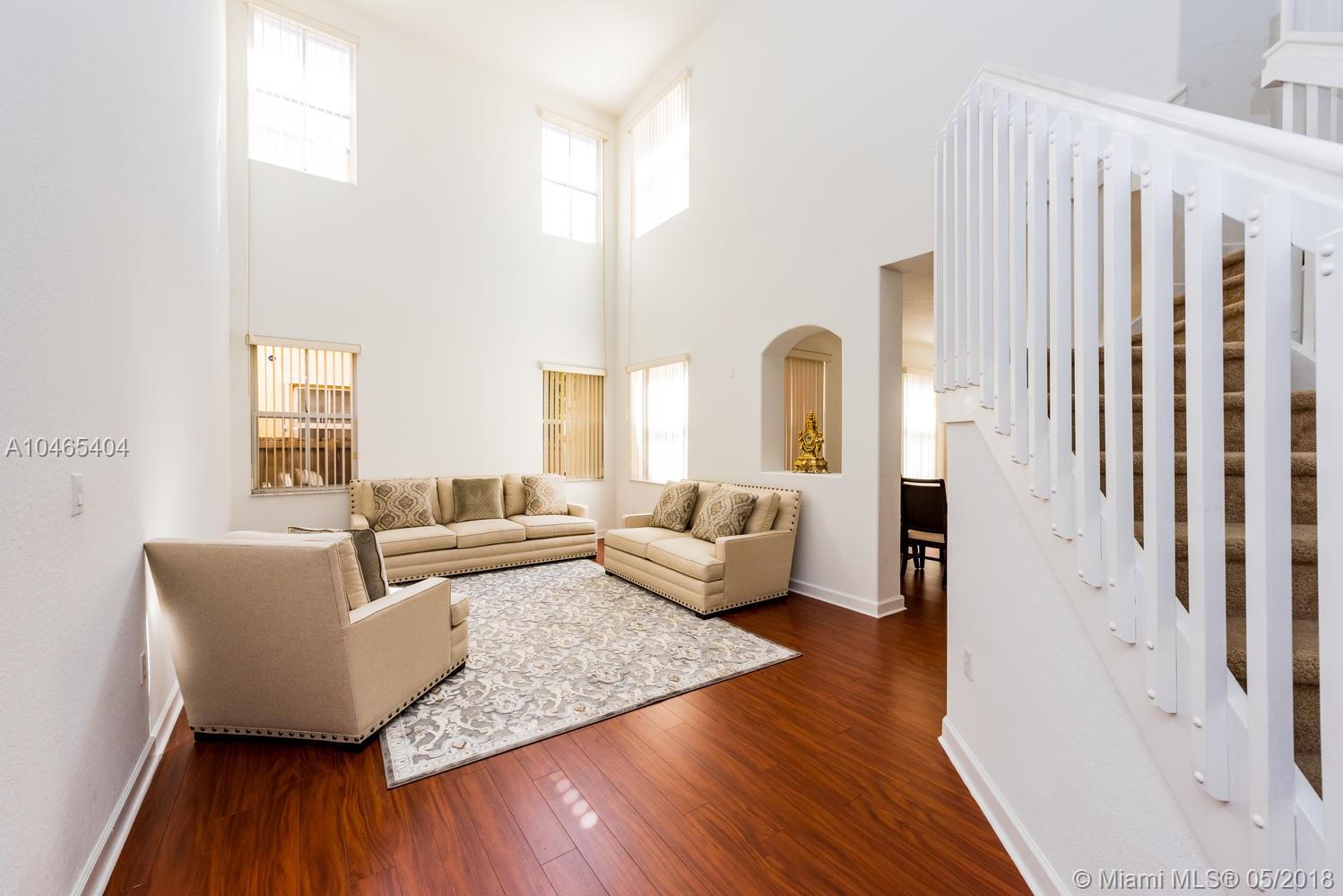 Spacious four bedroom and four bathroom single family home at Island at Doral. Tile and wood floors, Open kitchen with steinless steel appliances and wood cabinets, laundry room, double garage. High ceilings with a nice terrace. Enjoy the Doral living in a very family oriented neighborhood with excellent schools and an amazing club house with all the amenities.