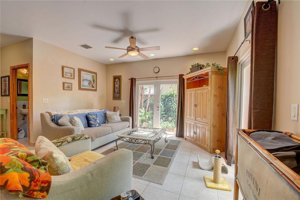 Must SEE!UNIQUE Beautiful home & income property,located close to schools, shopping,beach,airport & highways. This huge property has a 1/1.5 guest house,with a separate meter,entrance,parking,laundry room.Can be converted back to a 2 bedroom.The main house was built in 2004, it is a 4/3,4th room used as an office,private road entrance to a 2 car garage,lots of storage,private courtyard or room for a pool. Every room is full of natural light with views of the lush gardens,both houses have impact windows.