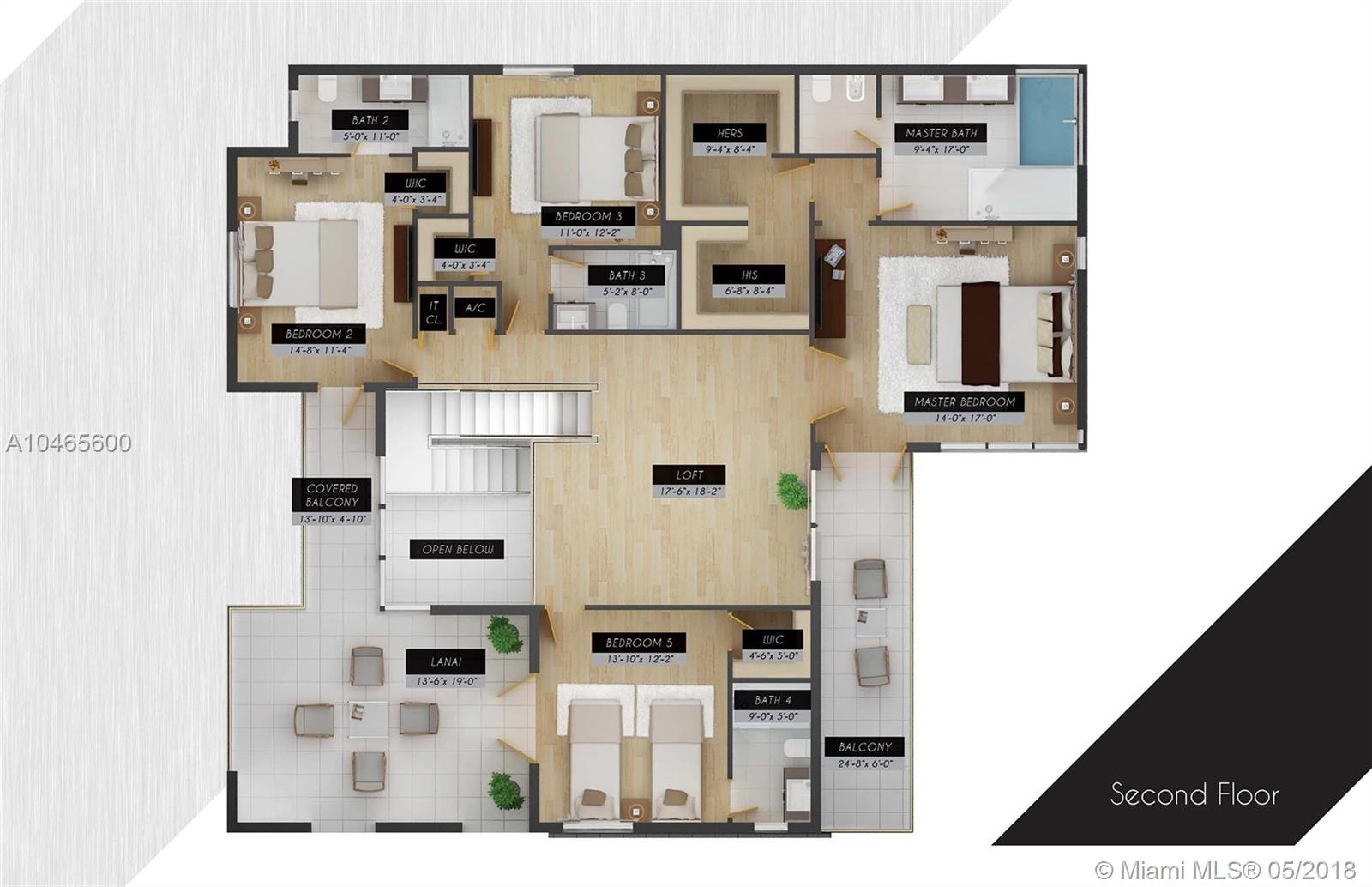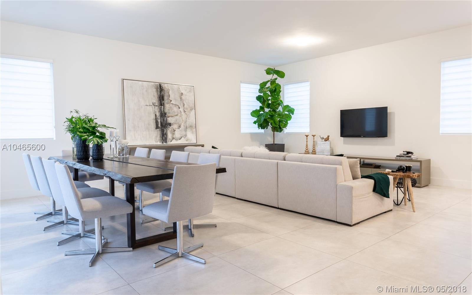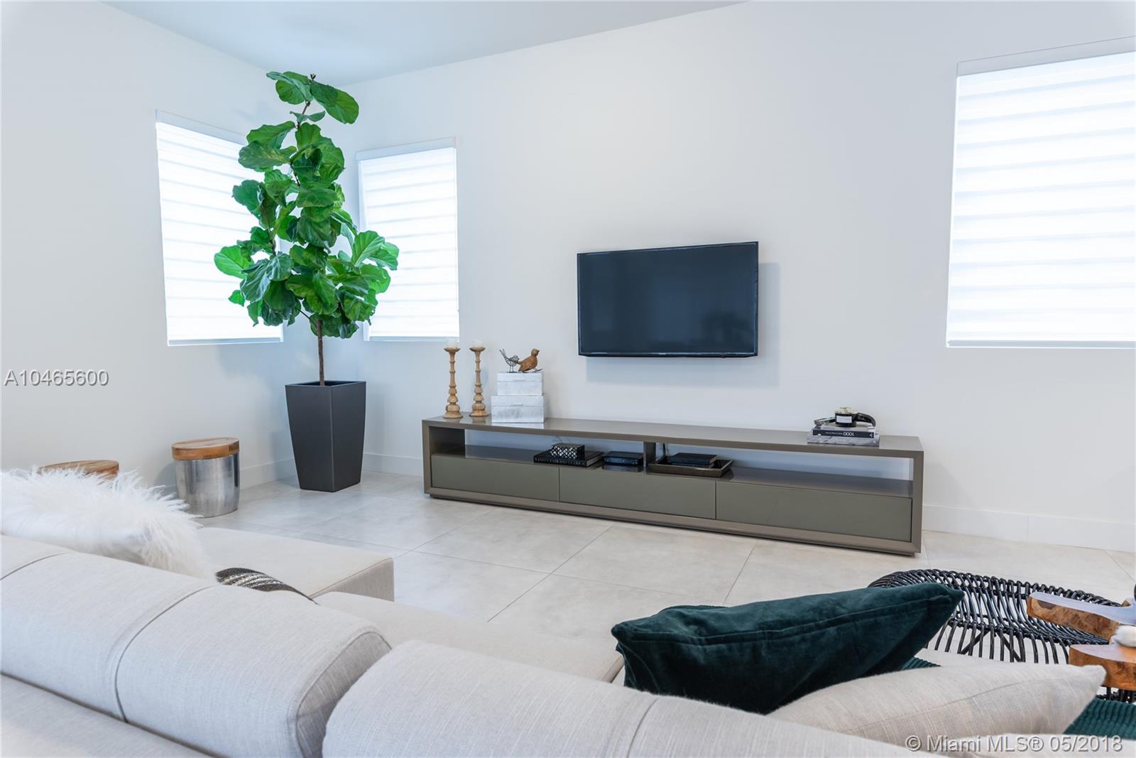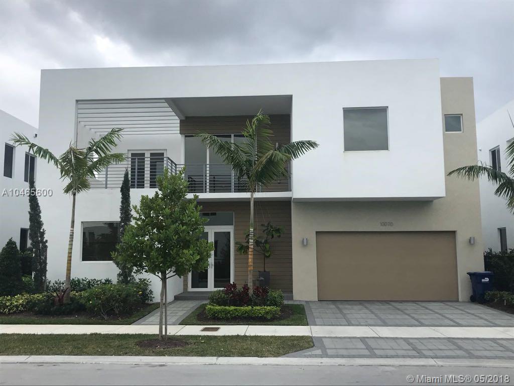 Gorgeous modern home at the prestigious Modern Doral. This spacious 5 bedroom / 5 bathroom home offers magnificent open floor plan, ceramic tiles with concrete finish throughout the first floor, 2nd floor wood floors, amazing gourmet kitchen with quartz countertops with waterfall, center island gas cooktop and exhaust, built in over and microwave and built in wine cooler. One bedroom and full bathroom on the 1st floor. The loft area on the 2nd floor is a perfect family living space. The Master Bedroom and 3 other suites on the 2nd floor.