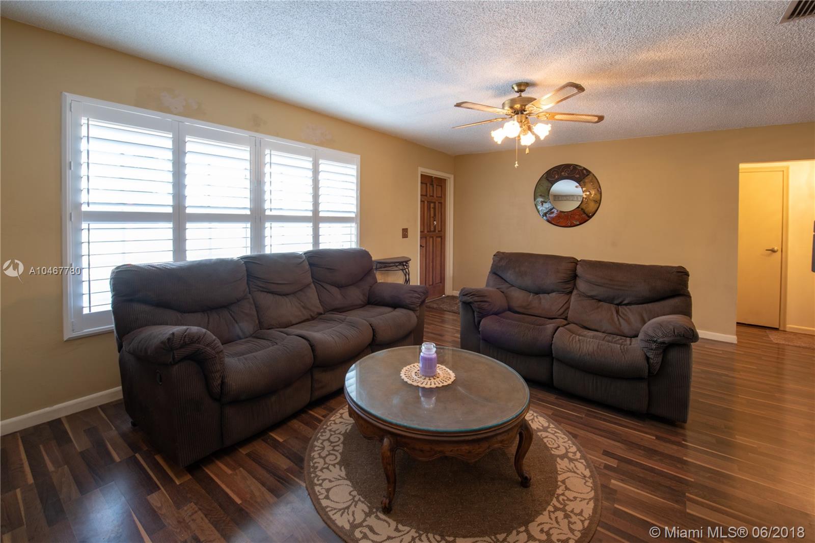 Look no further - This 3 bedroom 2 bath single family home with a 1 car garage & circular driveway features wood & tile floors throughout, over 1,600 square feet of luxury living, 3rd bedroom can be used as den/office/study and has sliding doors into living room, gas stove, upgraded kitchen, plantation shutters in living room. Great home in quiet neighborhood, close to all shopping, restaurants, parks. House has been upgraded and well maintained. Newer AC (2011); newer roof (2012) & electrical updated. Huge family room with natural light, large eat in kitchen with gas stove. Fully fenced and manicured back yard with garden, fruit trees & enormous staghorn fern. Circular driveway and front island. Hurricane shutters for entire house. No homeowners association!
