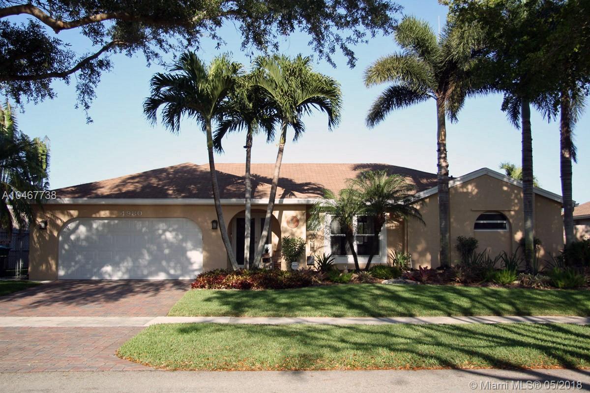 Totally renovated lake-front, pool home centrally located in desirable Cooper City. This home has been meticulously maintained by the current owners for over 20 years. The interior underwent a full reno in 2016 including 20' tile & hardwood flooring, top of the line LG appliances, custom-built kitchen cabinets with lighting, mosaic tile back splash, Brazilian granite counter tops in kitchen and bathrooms, knock-down ceilings with matching crown molding & baseboards, FULLY equipped with hurricane-impact windows & doors, customized landscaping with lighting, screened in patio, irrigation, & enclosed laundry room. Flamingo Gardens offers safe, quiet living & fantastic schooling.