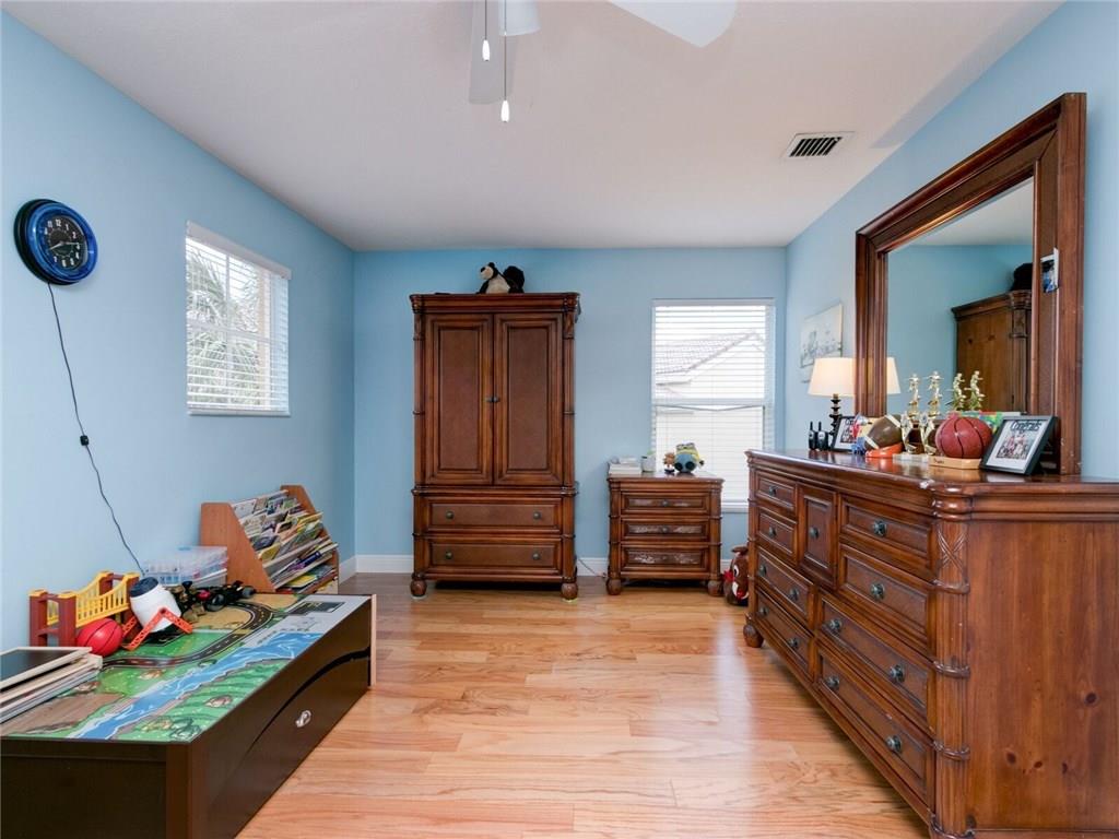 Large 5 Bed, 3 bath, updated, heated salt water pool home with large fenced backyard in top school district. S/S Appliances all less than 3 years old, 2 air units both 5 years old, no carpet, all wood floors upstairs, tile downstairs- 4 bedrooms upstairs including master with two walk in closets, second mstr down with full bathroom. Home has extended driveway, Mosquito mister, pool fence for kids, lush tropical landscape, family friendly street with lots of kids, Two resort style clubhouses, gated., HOA pays for landscape, house painting, guard gate, and so much more.