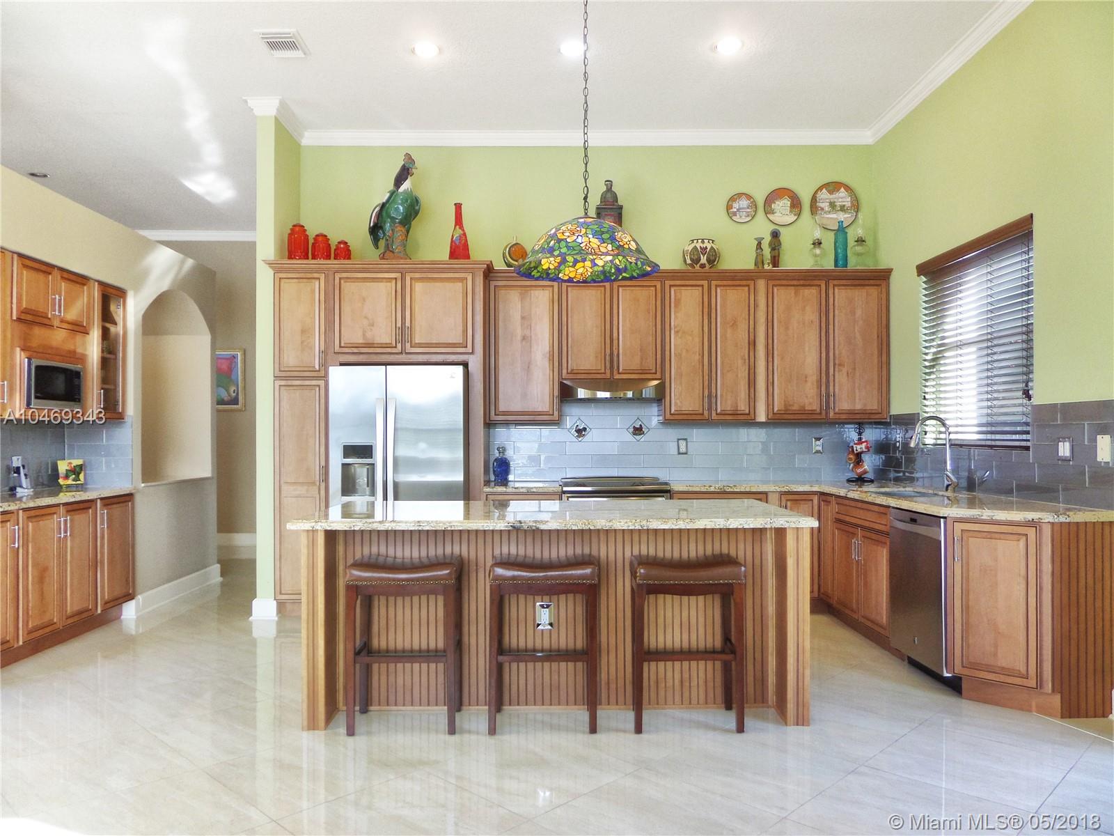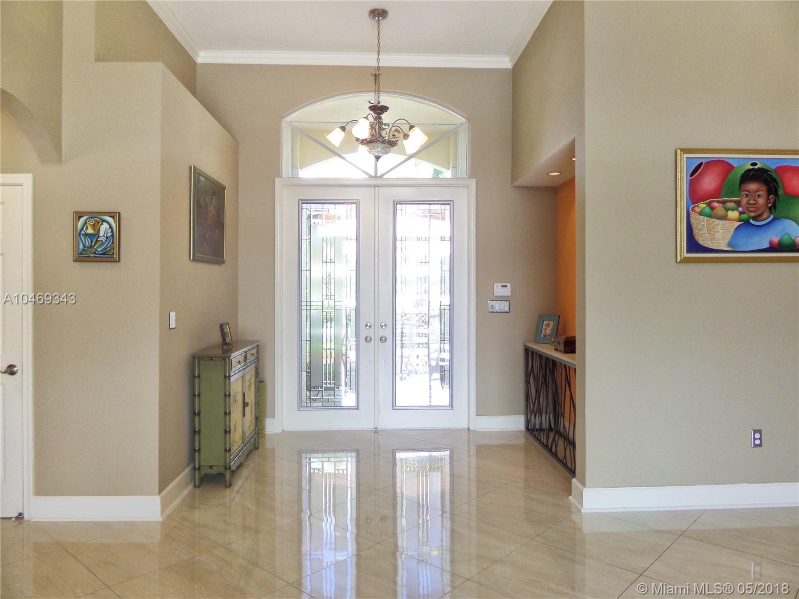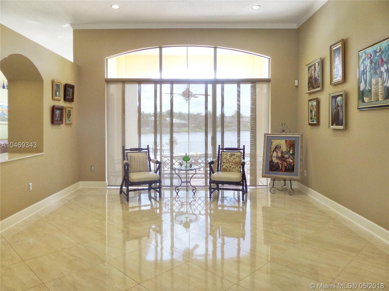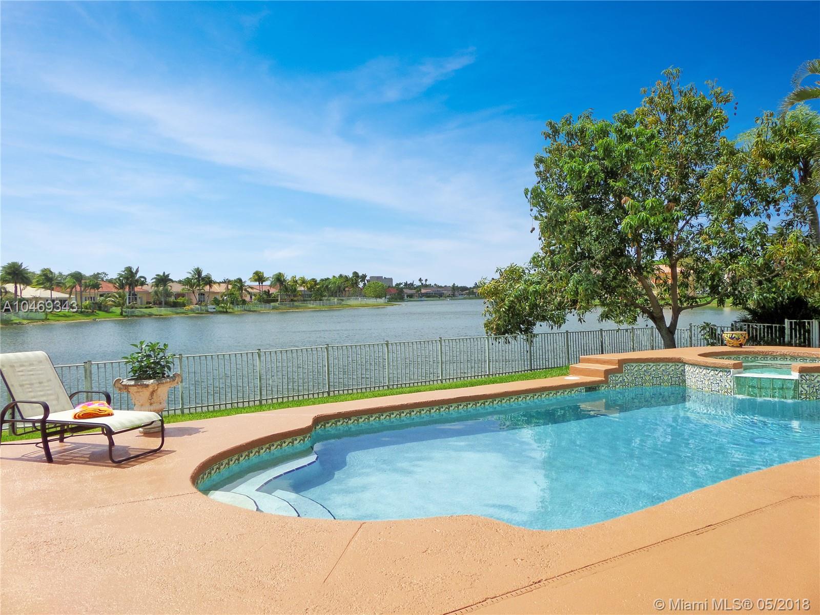 This gorgeous 4/3 lakefront pool home has THE best water views in the picturesque community of Bristol Bay. Everything has been impeccably updated - 2016 roof; top of the line a/c system; granite, wood, and stainless custom kitchen; real wood floors from Brazil in bedrooms and beautiful porcelain tile from Spain throughout living areas; fully repainted inside and out; custom blinds and shades; sparkling bathrooms - all updated, plus much more in this stunning home! Even the garage door and water heater were recently replaced. Abundant natural light enhances numerous architectural details such as crown molding and vaulted ceilings. Large patio surrounding heated pool and spa, fenced yard with mango and avocado trees, and accordion shutters all around. Quiet, security patrolled community.