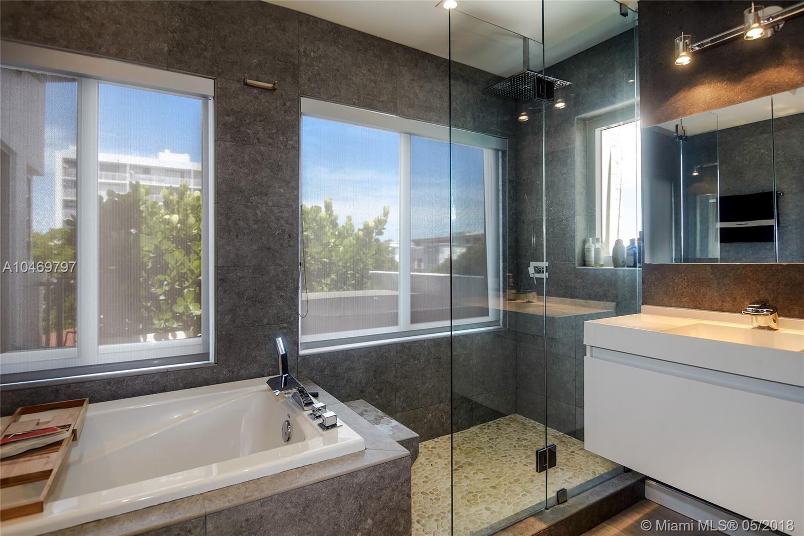 Corner four-story townhouse. This 4 bedroom/3.5 bathroom gem has terraces on every floor and backyard that leads to private guest suite with possibility to be rented out. The kitchen features white quartz counters, Bosch appliances, Hansgrohe accessories, and center island. Entertain in the spacious living room, on the deck by the fire pit, or head to the terrace to relax in the jacuzzi while enjoying views. House is complete with hurricane impact doors and windows, pearl white Cali Bamboo wood floors, LED lighting, electric blinds, custom build outs, and 2 covered parking spaces. Central location to West Ave, Sunset Harbour, Lincoln Road, and South of Fifth. We are listed at $455/SF while the townhouses in 33139 in the past year have closed between $521/SF - $531/SF!