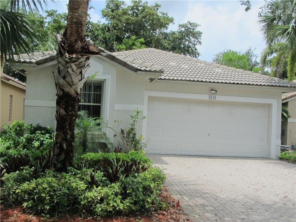 Fantastic opportunity for a family wanting the Great schools of Weston. Very Open split bedroom floor plan with volume ceilings. Covered and screened back porch, pavered walk way to entrance and driveway. Tile throughout living area and wood flooring in bedrooms. Accordion shutters. Maint includes: 24 hour guard gate, lawn maint/sprinklers, alarm monitor, Cable TV w/ HD box, Exercise room, huge community pool & Tot lot. Priced to Sell - Needs some TLC. Don't miss out on making this your Weston home.